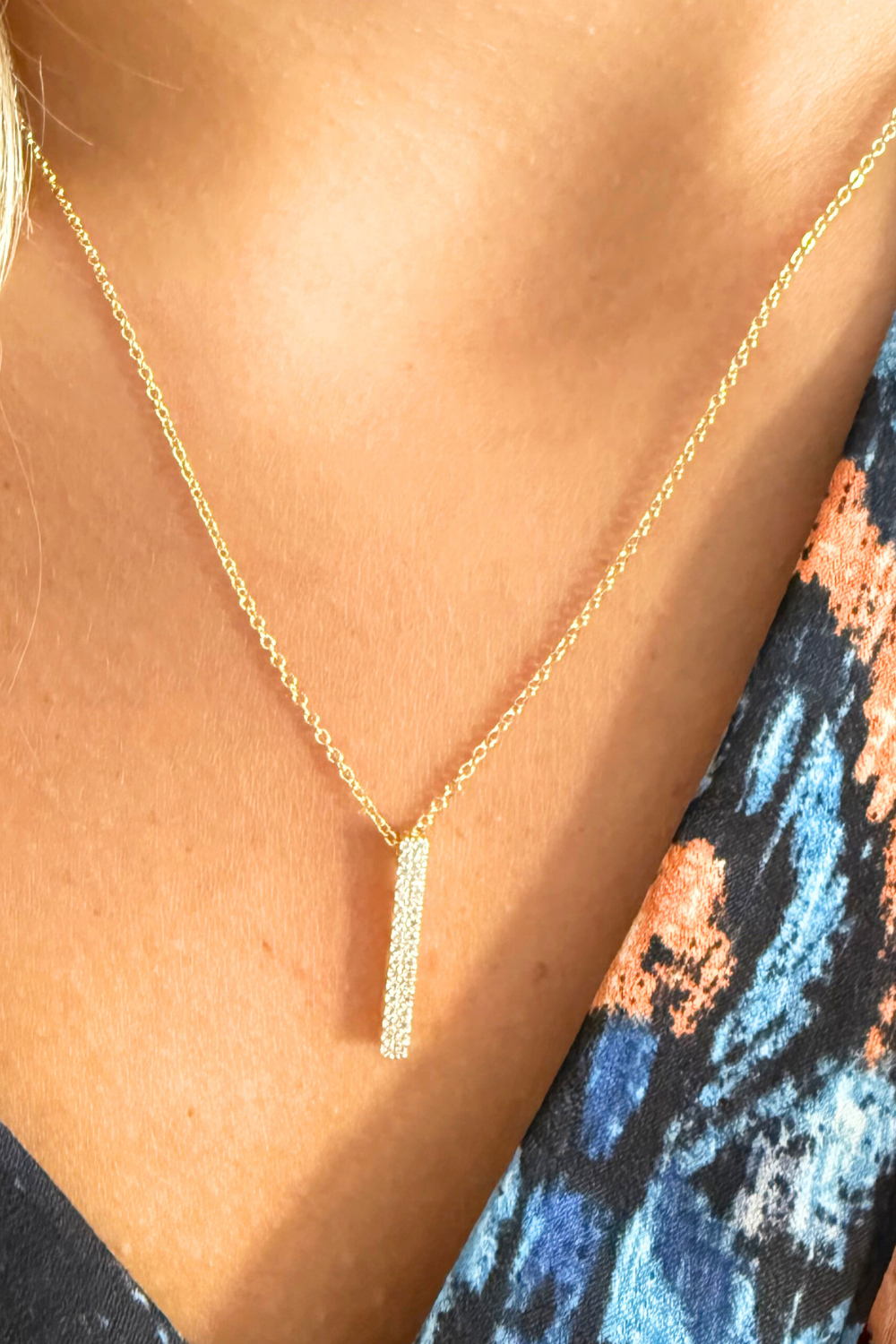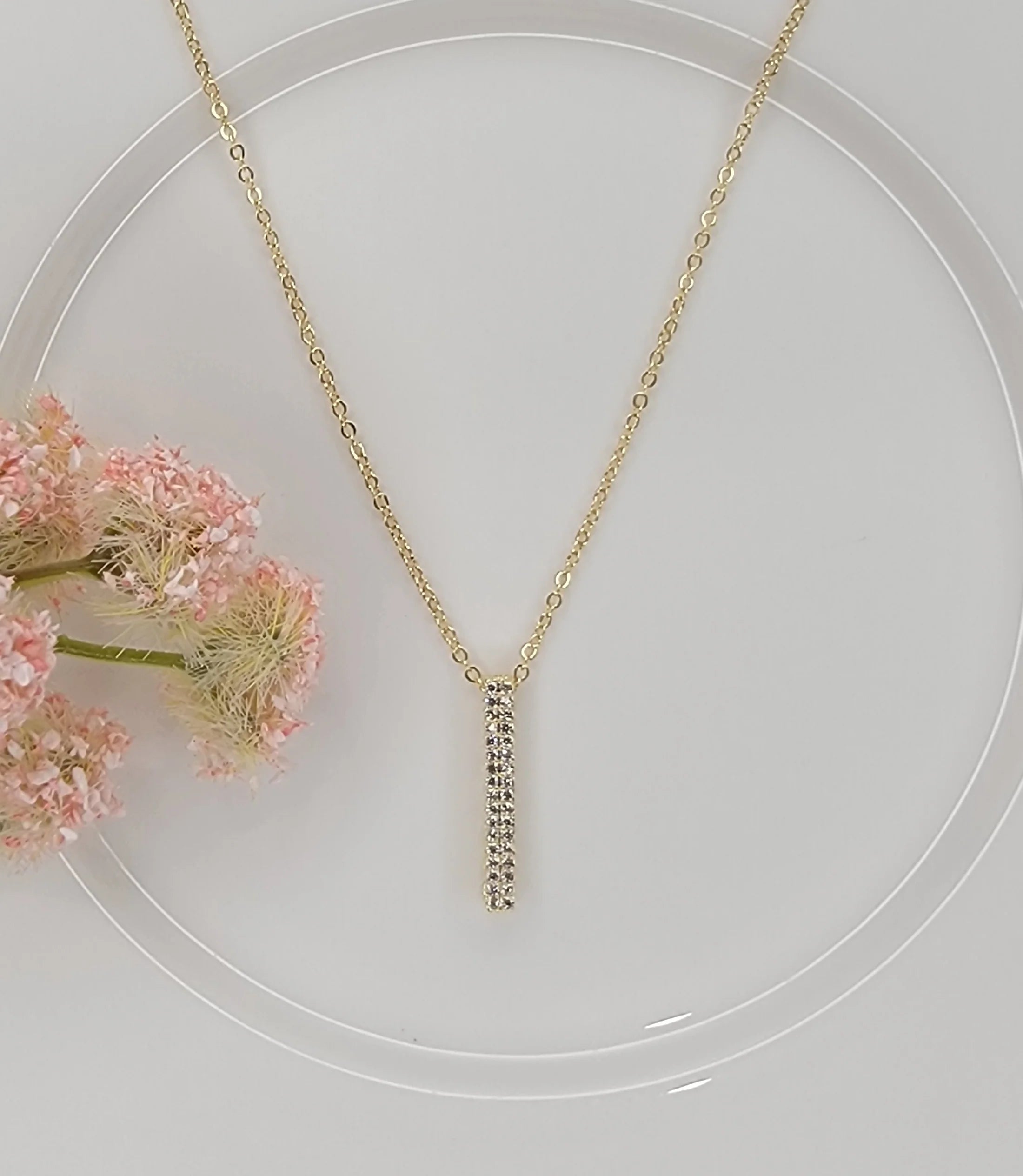 Vertical CZ Bar Pendant Necklace