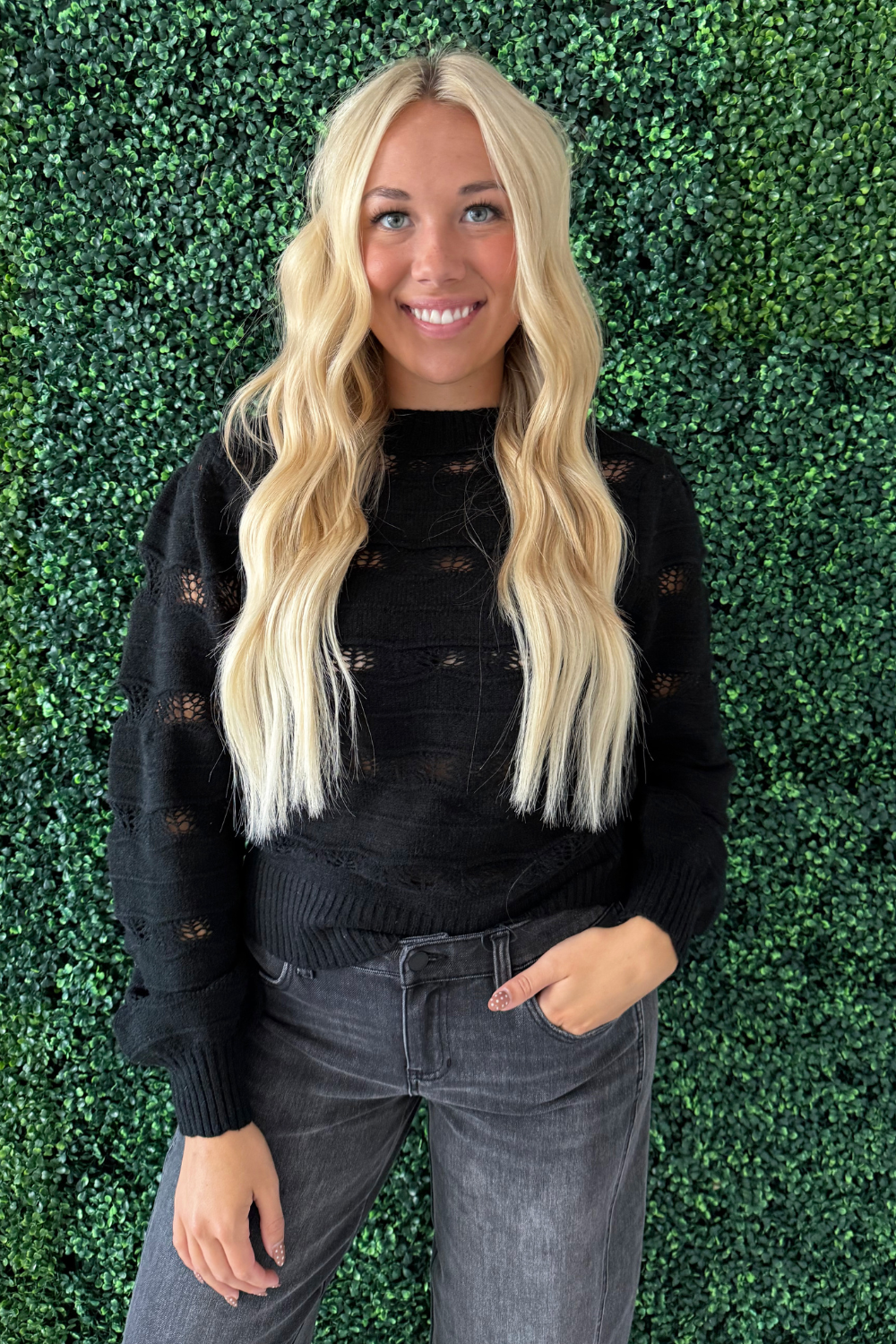 Pointelle Stripe Knit Pullover