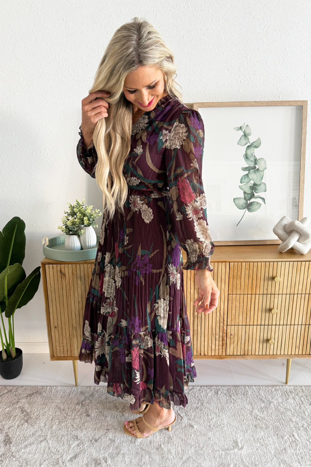 Floral Surplice Pleated Maxi Dress