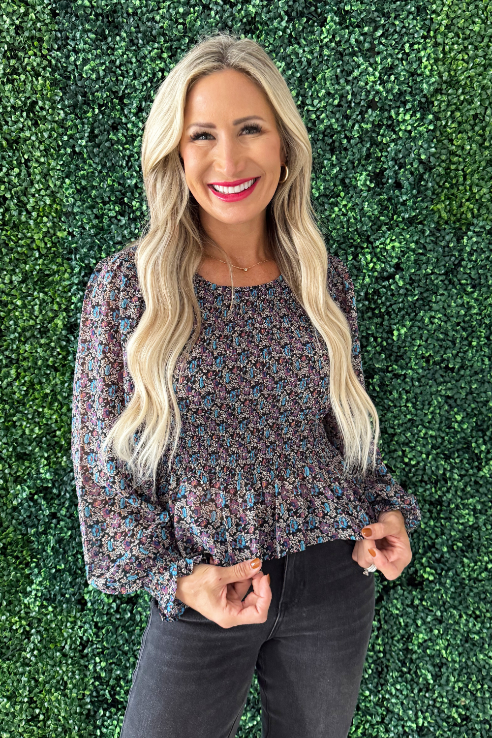 Long Sleeve Woven Blouse w/ Ruffles