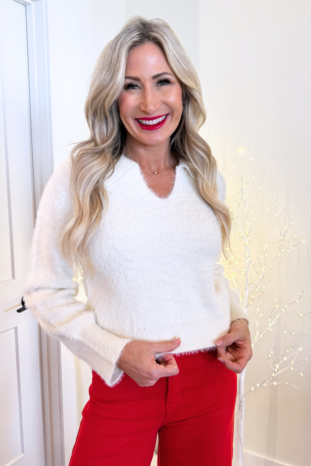 Soft Yarn Collared Sweater Top
