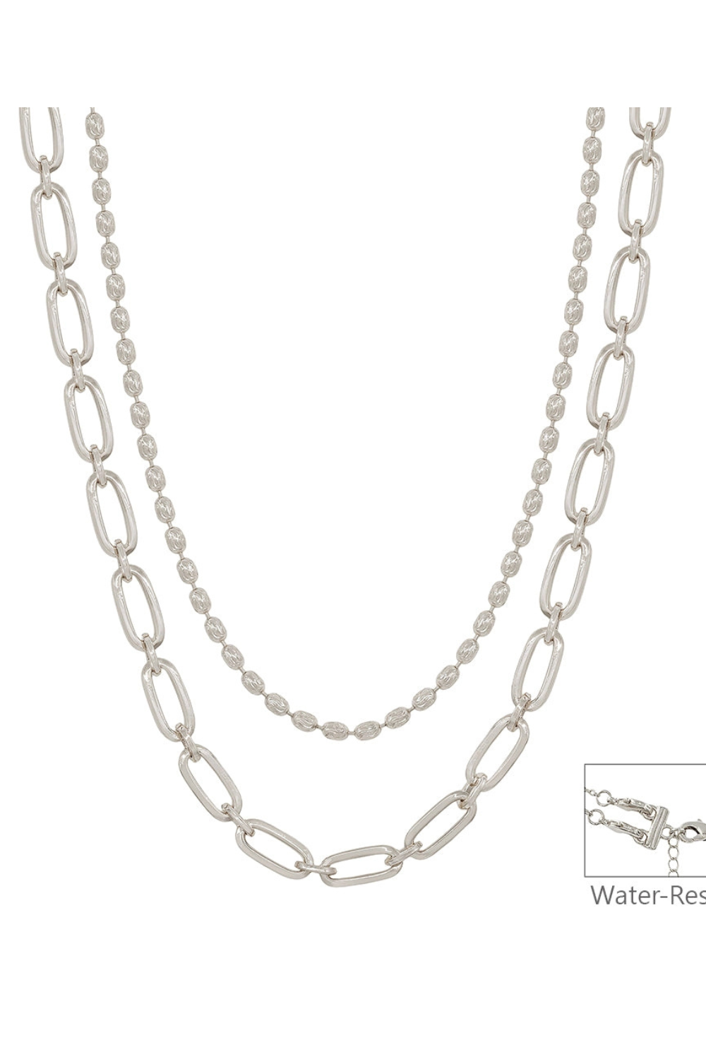 Water Resistant Double Layered Oval and Flat Chain Necklace