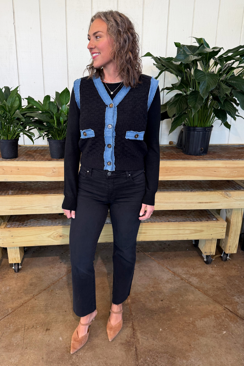 Denim Trim Knit Cardigan