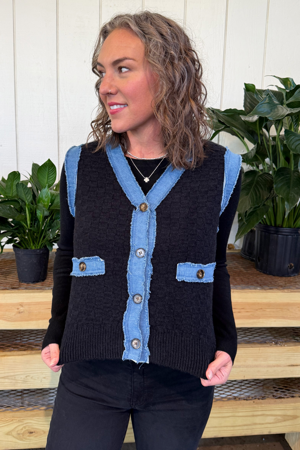 Textured Button Up Sweater Vest