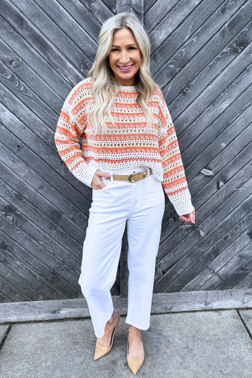 Round Neck Multi Stripe Sleeveless Sweater Top