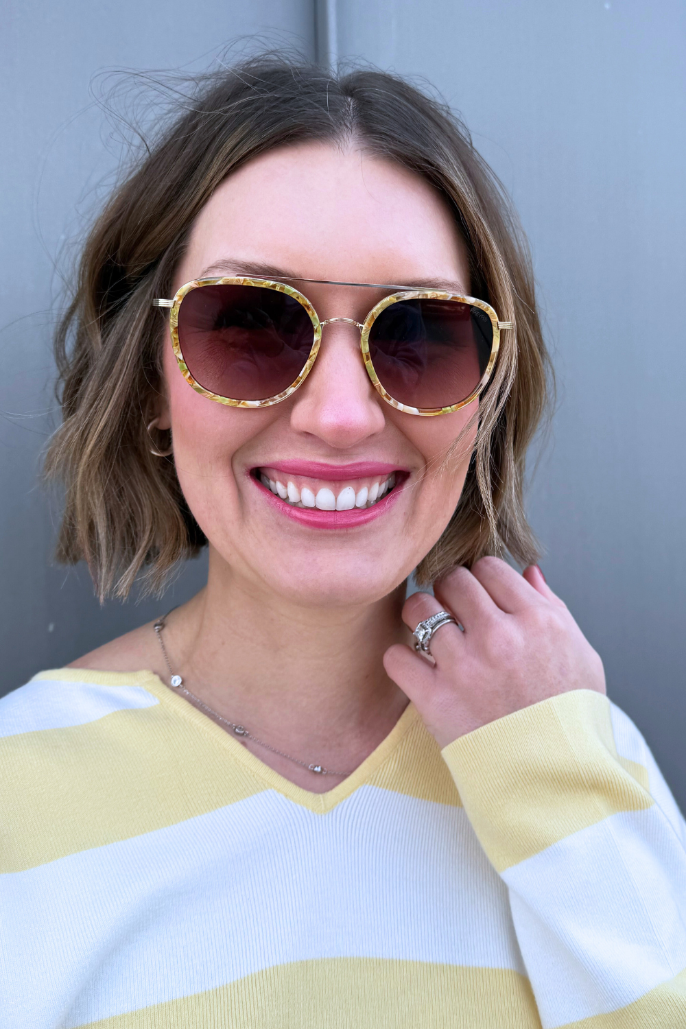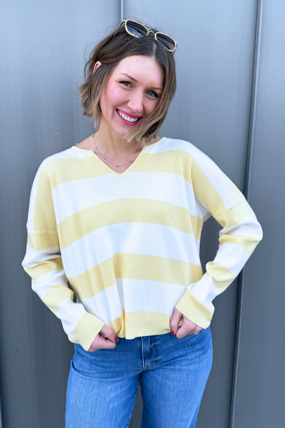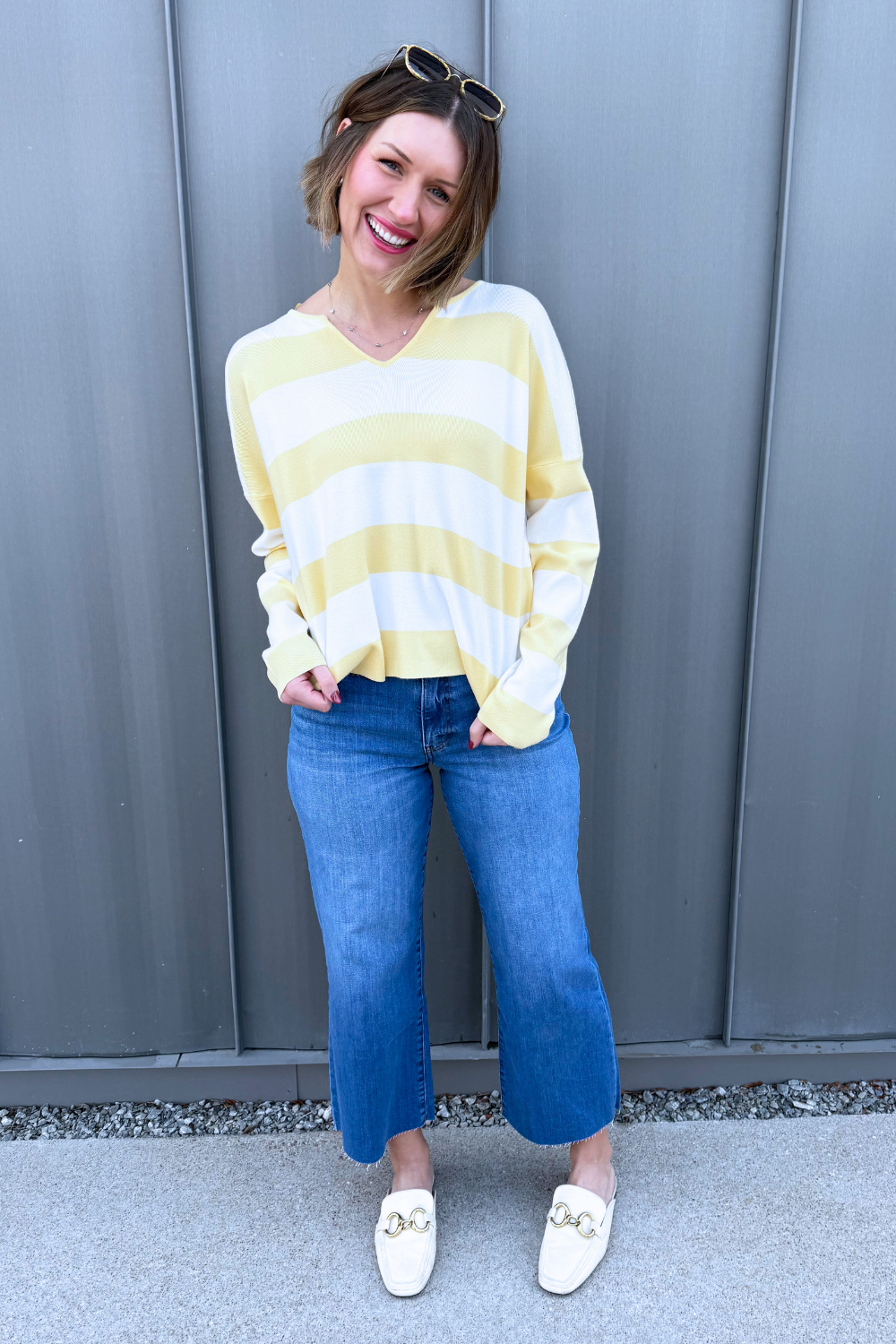 Split Neck Slub Sweater Top with Dolman Sleeves