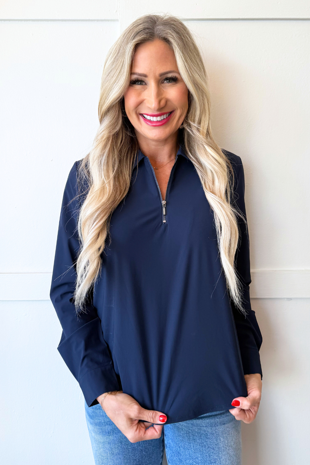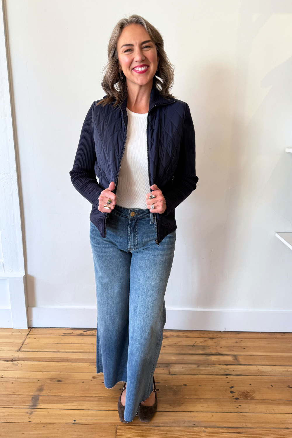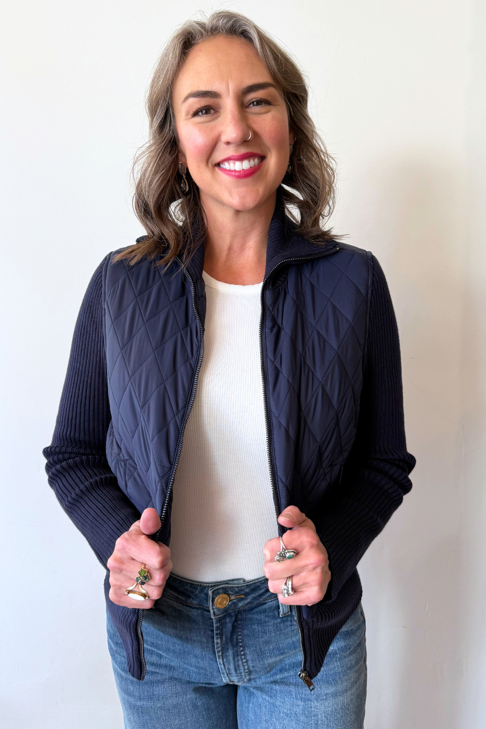 Long Sleeve Zip Front Sweater/Woven Jacket