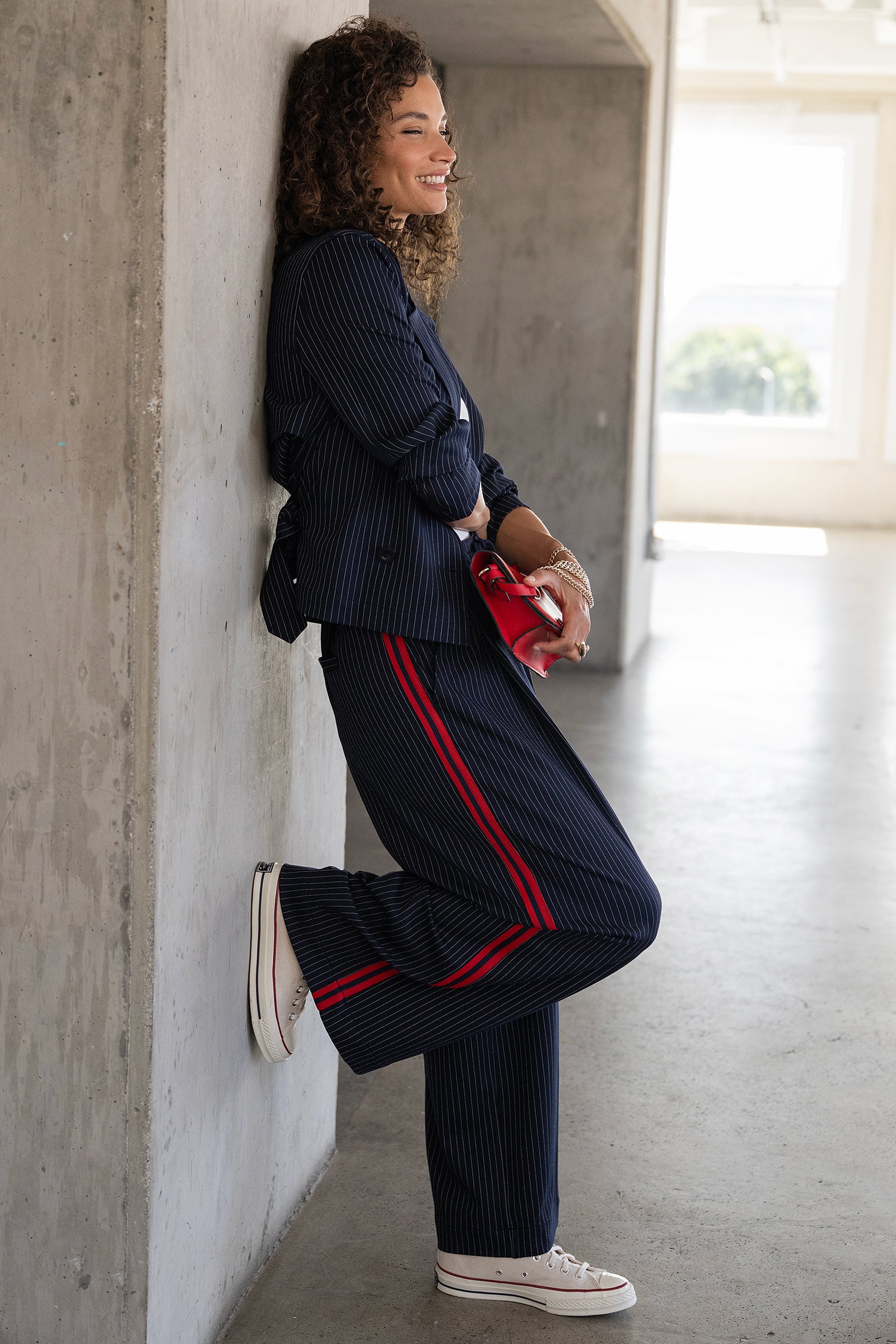Wide Leg Pleated Trouser w/ Side Stripe 30" ins