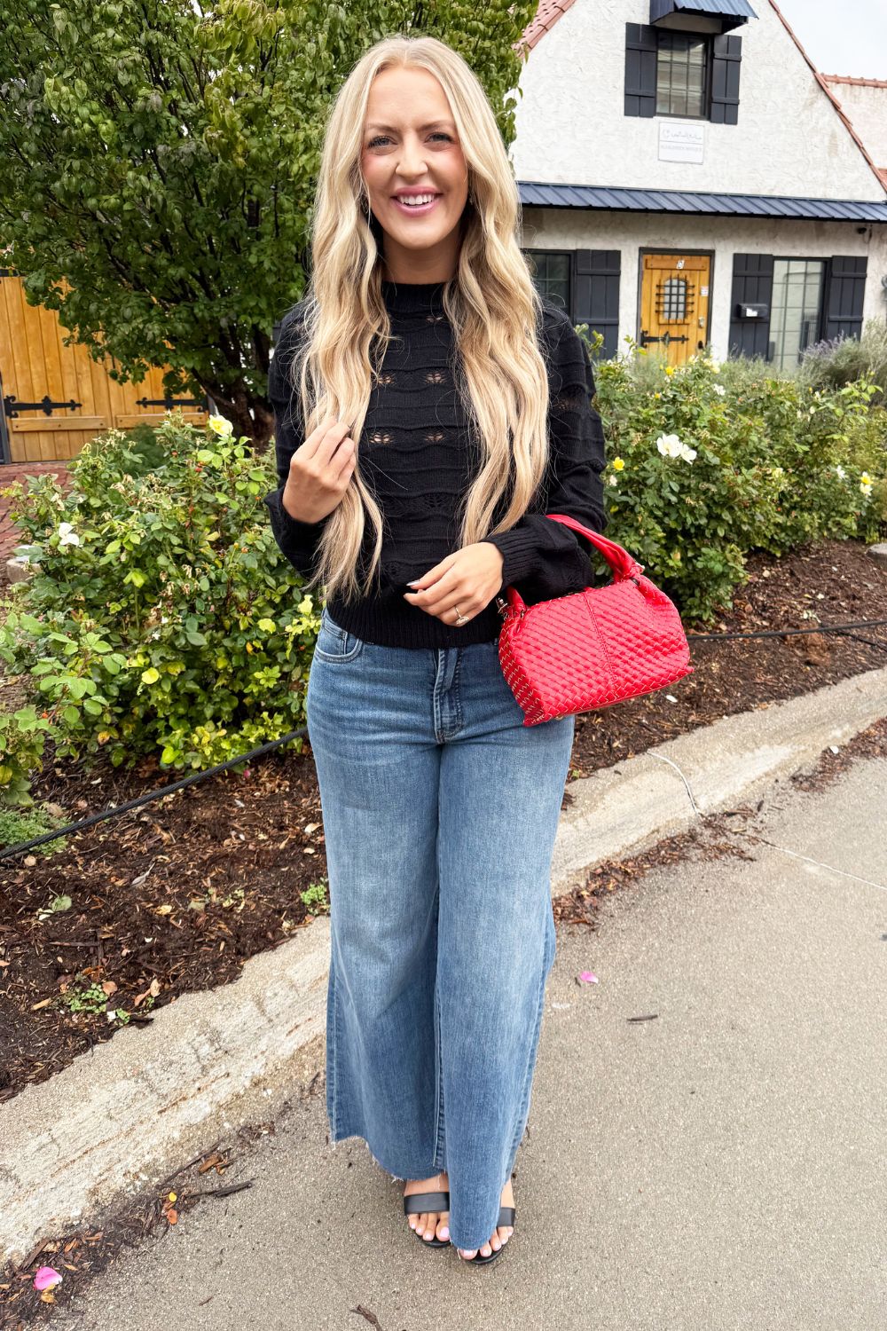 Long Sleeve Mock Neck Sweater w/ Fringe