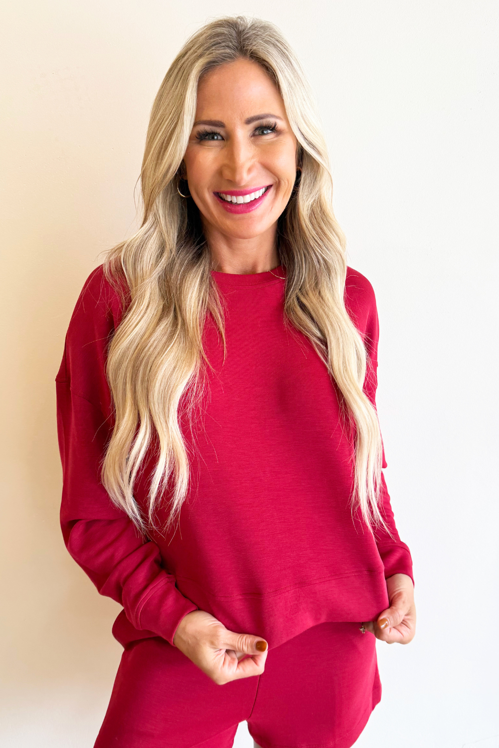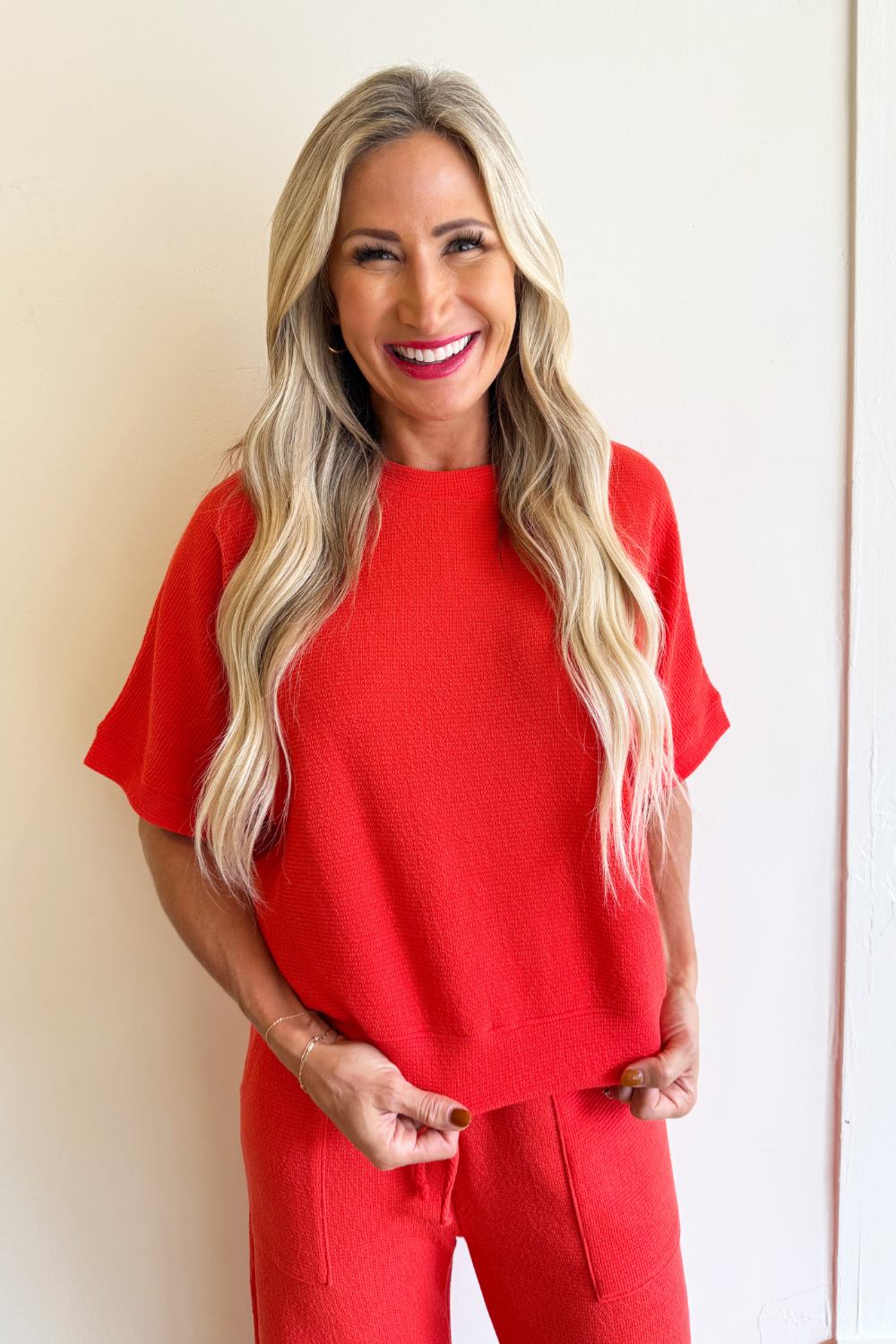 Round Neck Cloudy Knit 1/2 Sleeve Top