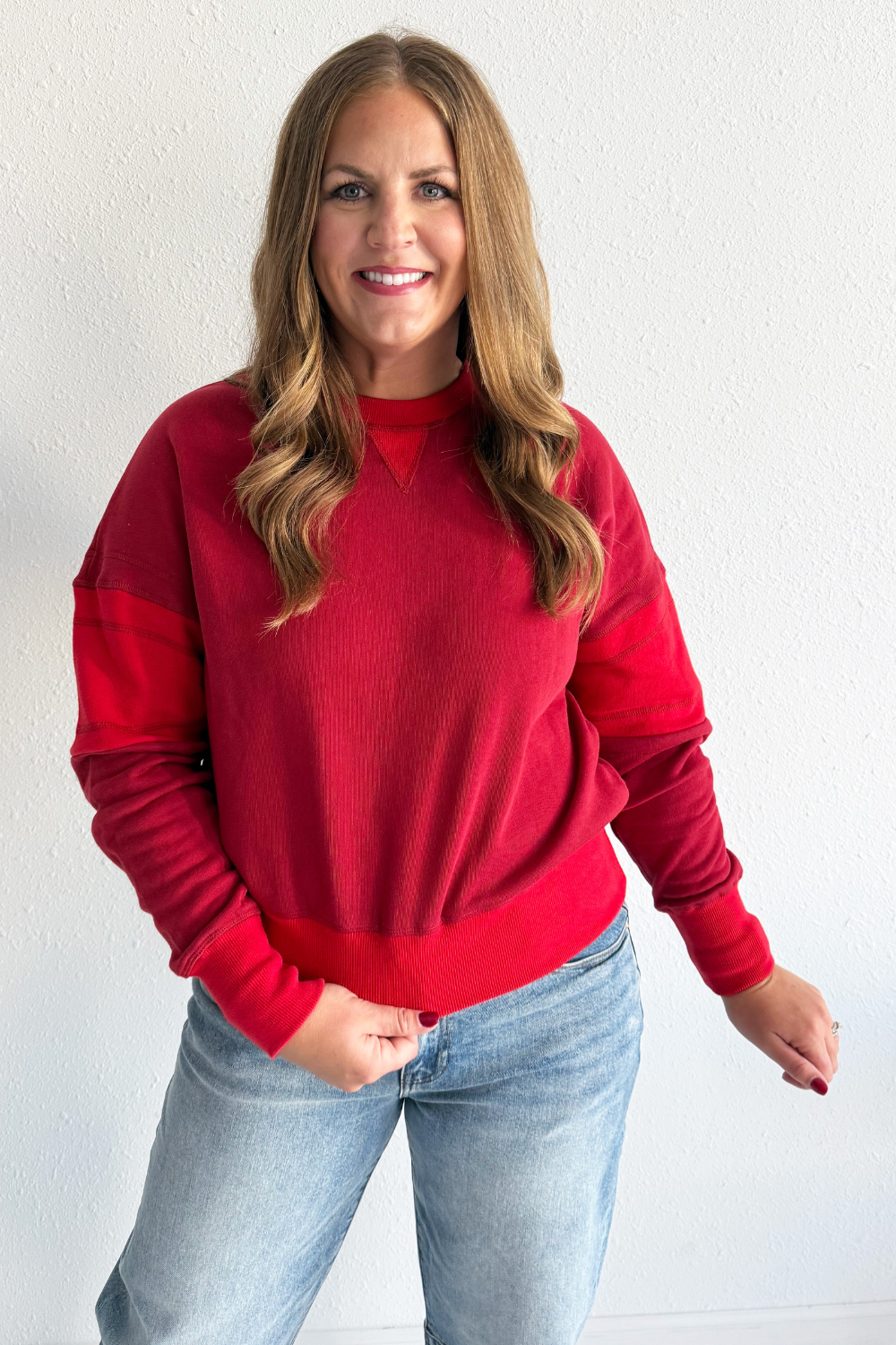 French Terry Collared Color Block Henley Top
