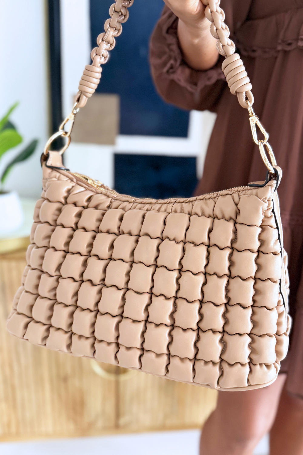 Jacqueline Puffer Shoulder Bag w/ Macrame Strap