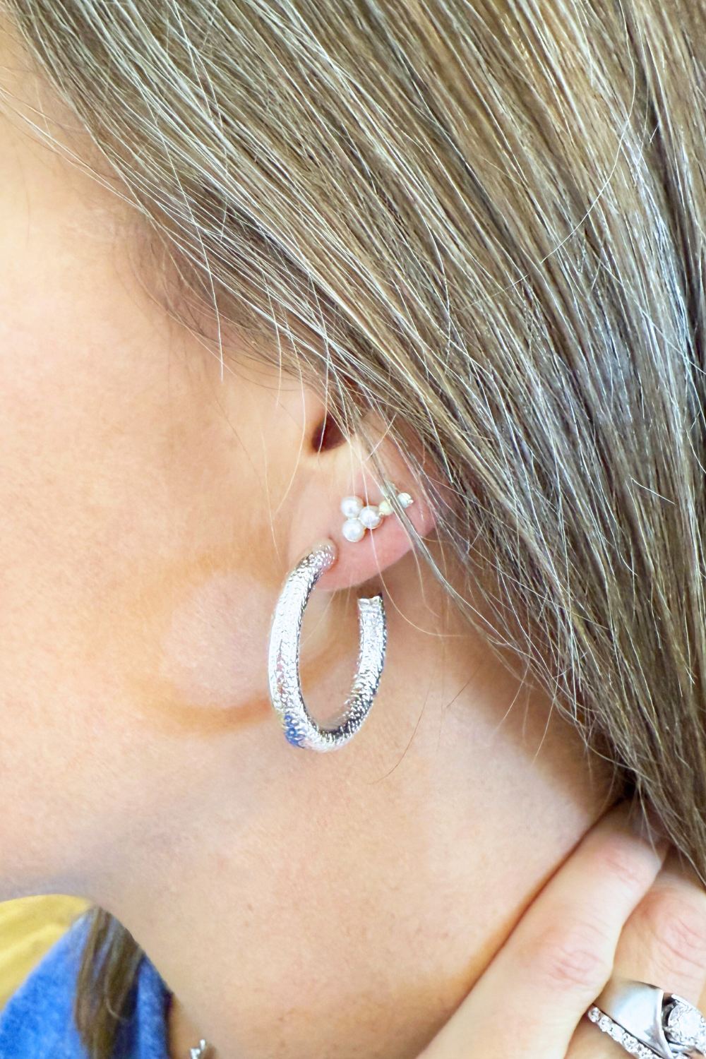 Be bold with these stunning 1" Hoop Earrings. They come in both silver and gold and are made of a hammered, textured material. Style these for the office with a nice navy blazer and slacks for the perfect outfit!