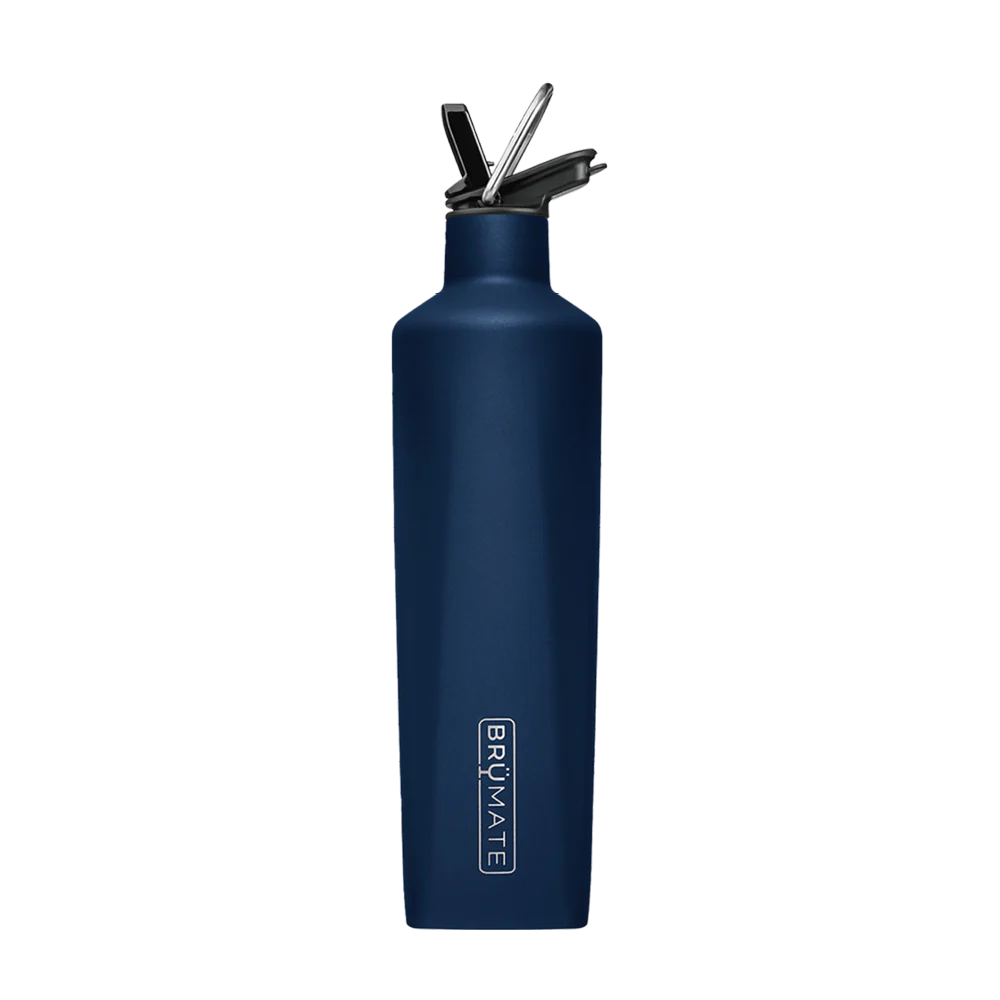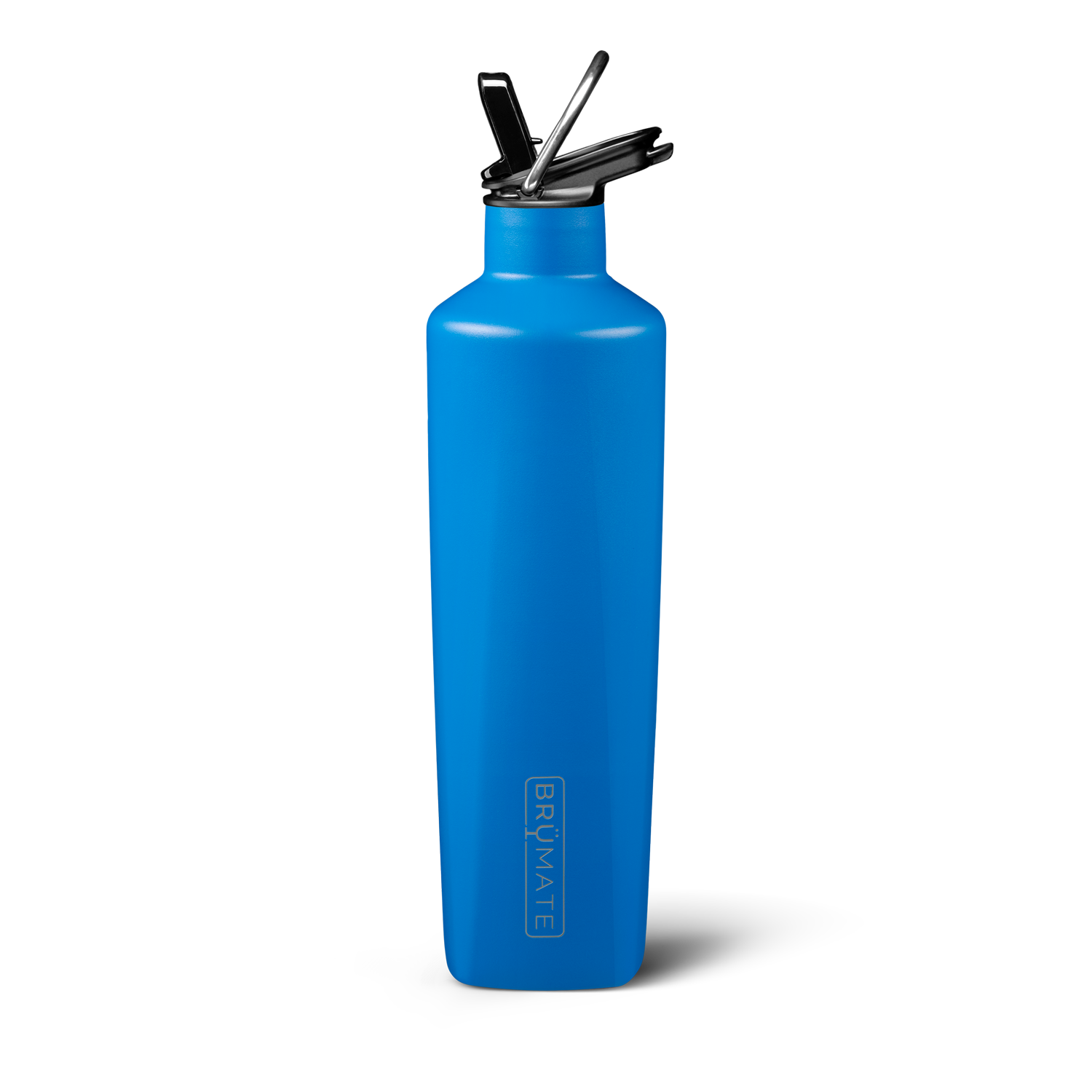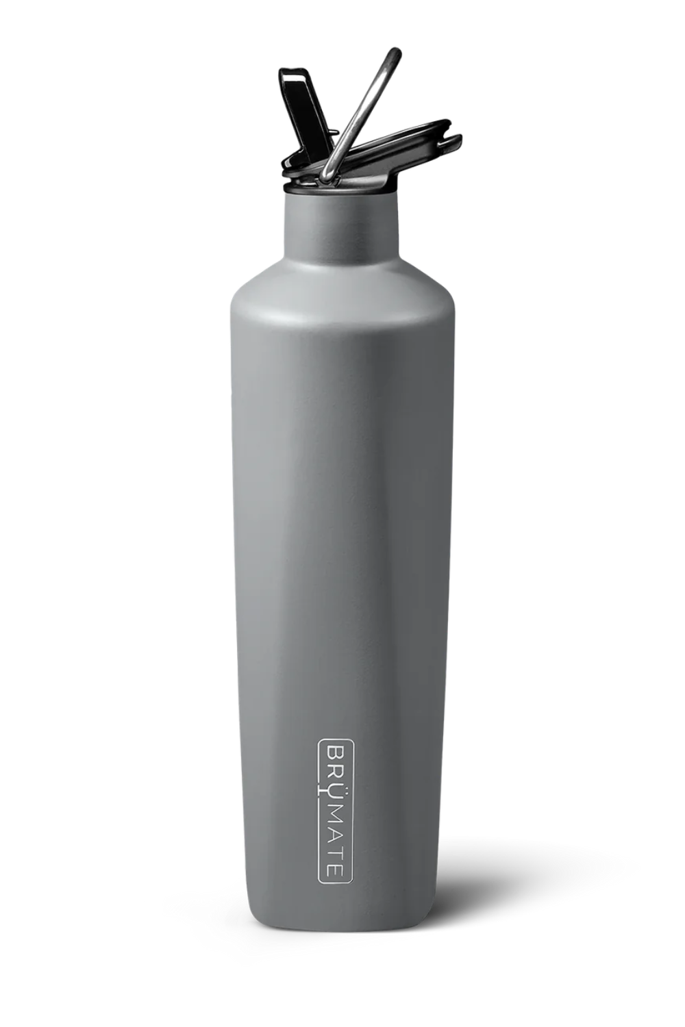 The most functional water bottle of its kind - the BrüMate ReHydration Bottle is a 25oz canteen with two functions: Hydration Mode, and Party Mode. Holds 25oz of your favorite liquor so you can keep your spirits ice-cold while on-the-go with a leak-proof, twist-off lid that doubles as a 1.5oz shot glass. Or, screw on the included straw lid with a durable, easy-carry handle , so you can rehydrate the morning after and use it as your all day go-to hydration bottle for any occasion or activity. Drink Better. Whenever. Wherever.