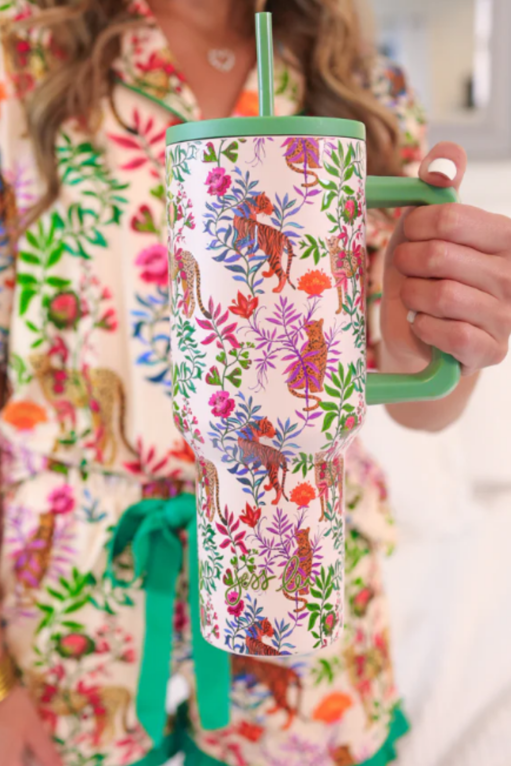 Stay hydrated in style with our Jungle Oasis Tumbler! Featuring a fun multicolored jungle print, this tumbler is perfect for on-the-go sipping. Keep your drinks cool and look good doing it.