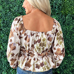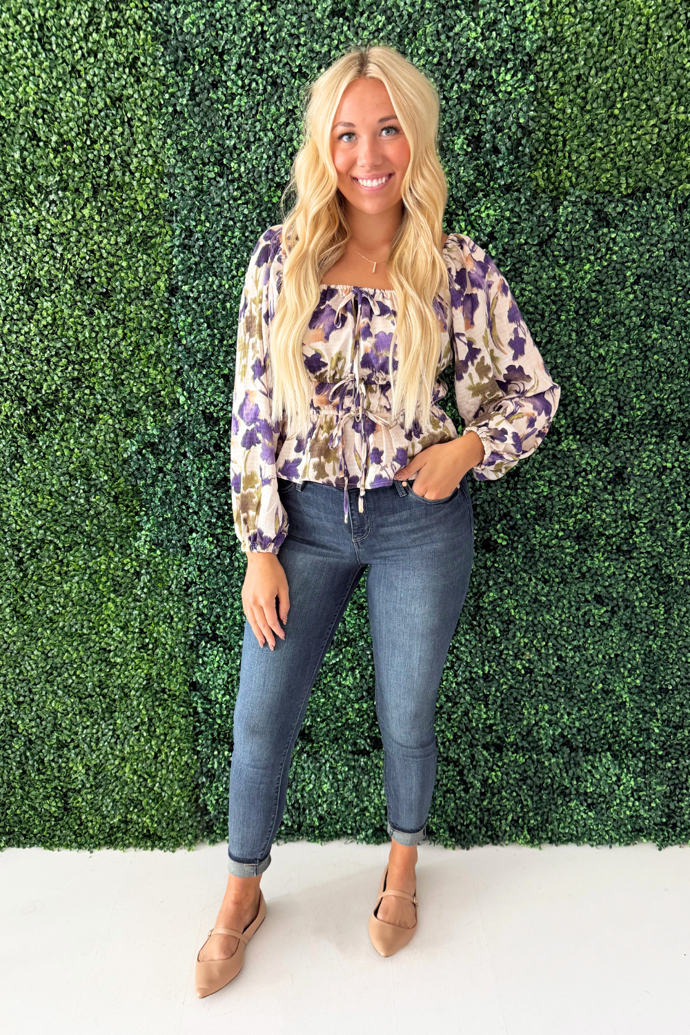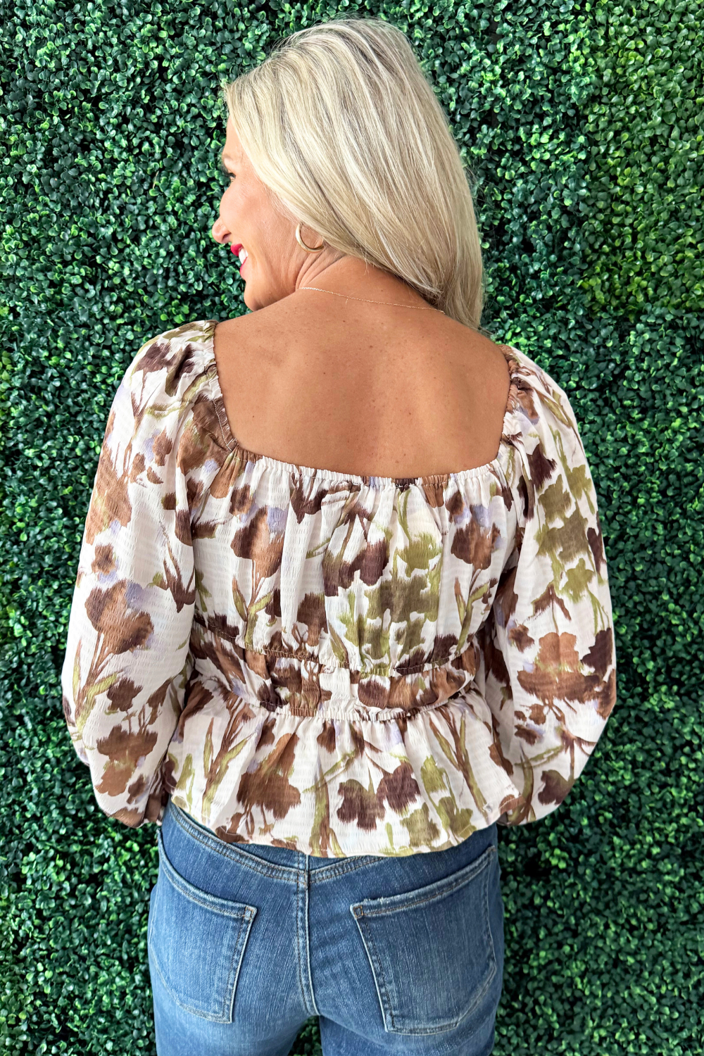 Add this amazing blouse to your fall wardrobe for endless fall fun! Featuring a square neckline, puff sleeves, babydoll silhouette, and adjustable tie detail at the bust, this top is going to be one you reach for again and again!