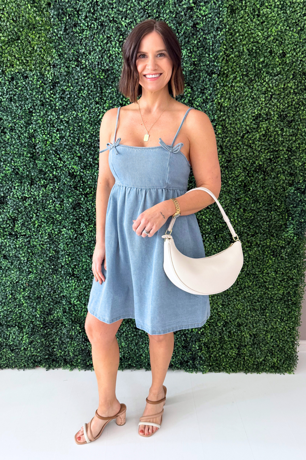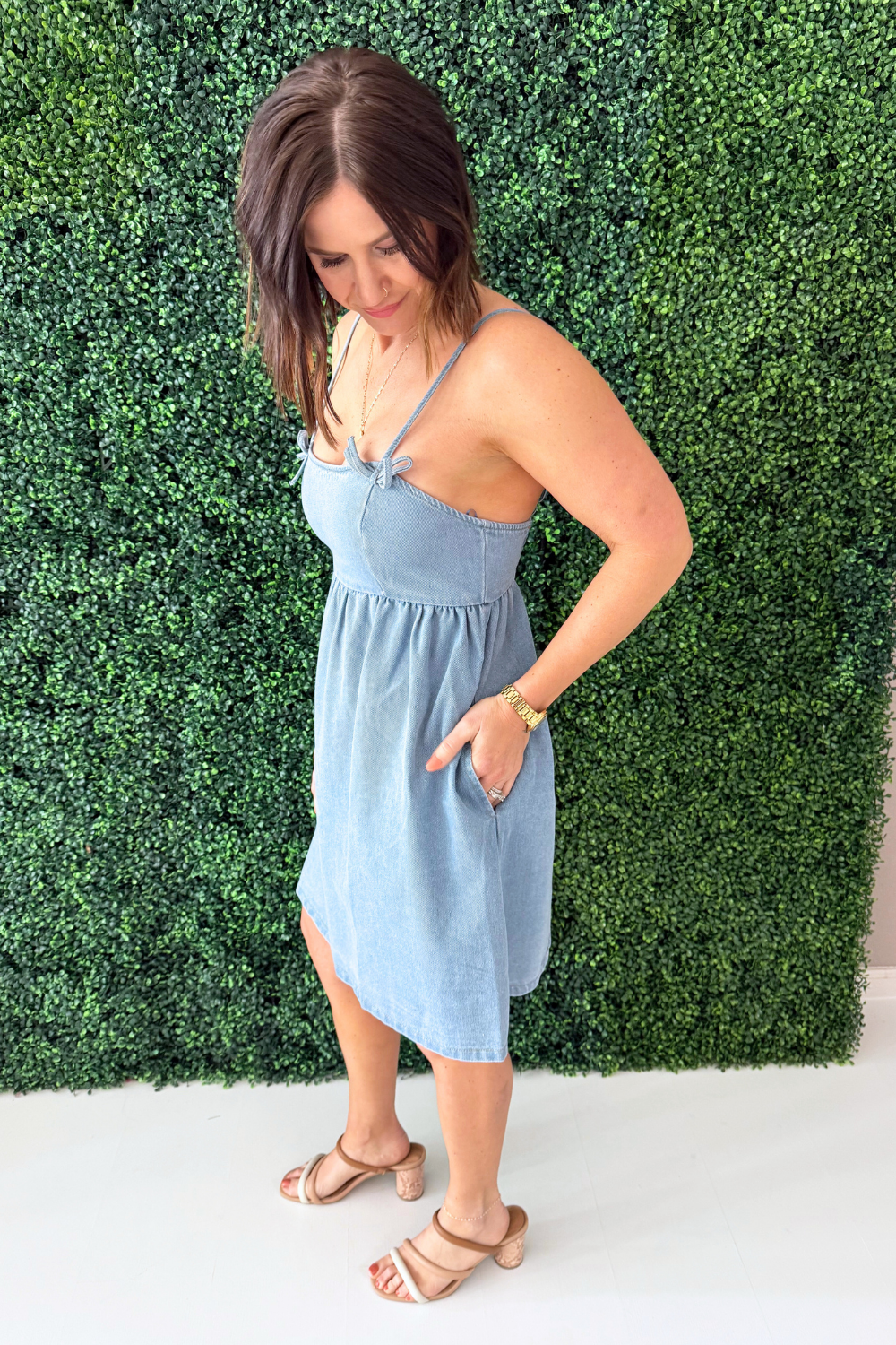 The Alyssa Bow Detail A-Line Dress is a fresh and feminine style designed with an easy, flattering silhouette and thoughtful details. Featuring a bow accent and a softly flared A-line shape, this dress creates a breezy look that’s perfect for warm-weather days. The smocked back offers a comfortable, flexible fit while adjustable straps allow for a customized feel. Crafted from breathable 100% cotton, it’s lightweight, effortless, and easy to dress up or down.