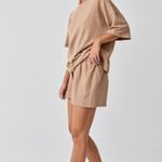 Keep it simple and chic with this essential lounge set, designed for everyday comfort. The oversized tee is perfect for casual days. Lightweight and versatile!