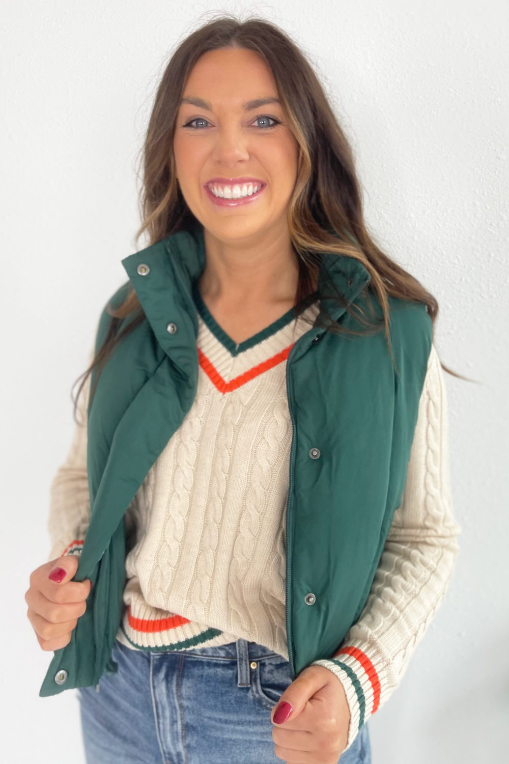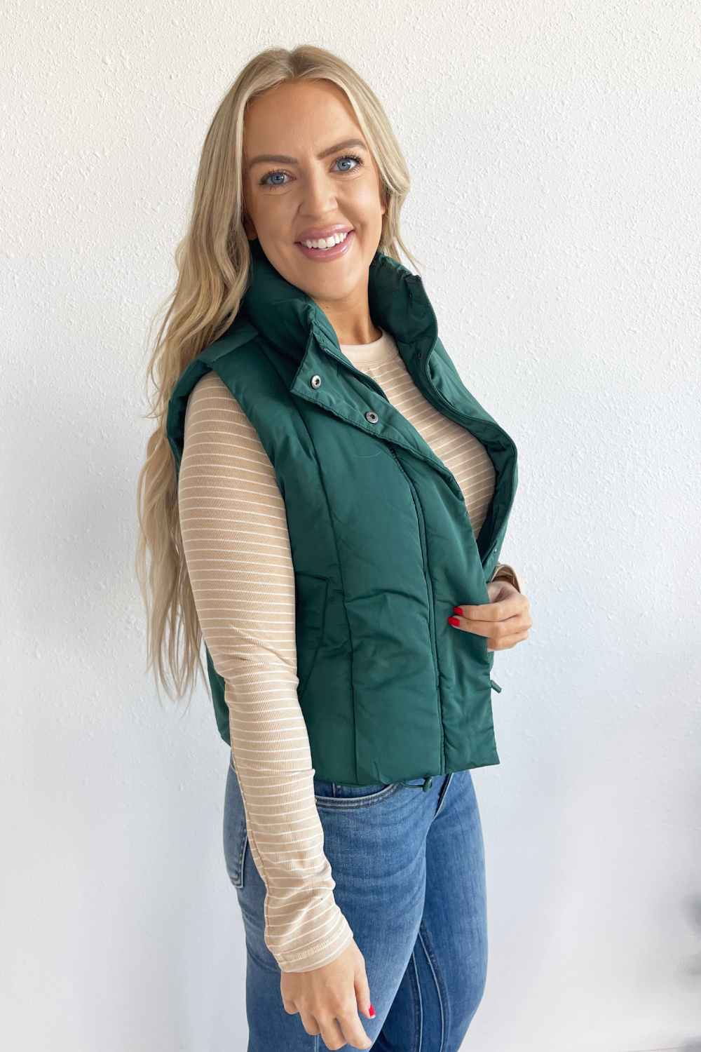 Add-to-cart now! The Anya Vest from Thread & Supply will be your go-to vest this season. The vest has unique seaming detail down the length of the puffer vest. The combo zipper and snap closure adds versatility and function to this stylish vest. Layer it over your favorite top and you are ready for cooler weather.