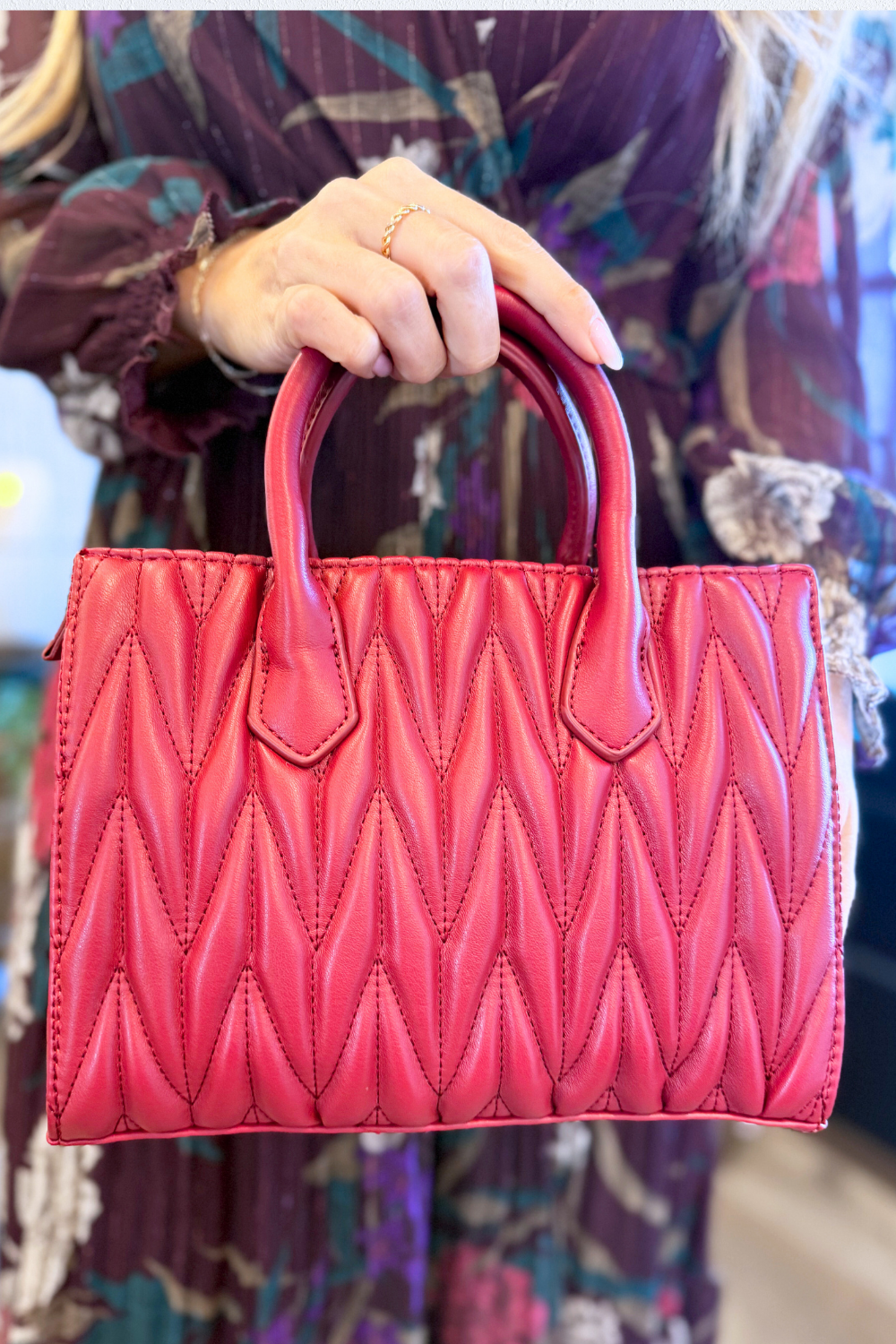 The Arbor Herringbone Satchel combines timeless style with practical design. Crafted in a classic herringbone pattern, it features dual handles for easy carrying and a structured silhouette for everyday elegance. Perfect for work or weekend outings, it’s a versatile bag that complements any outfit!