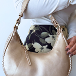 A perfect everyday bag, the Aria Whipstitch Crescent Shoulder Bag effortlessly blends fashion and functionality. Its sleek, crescent shape and stylish whipstitch detailing make it an ideal accessory for all your spring and summer adventures, offering both practicality and chic flair.