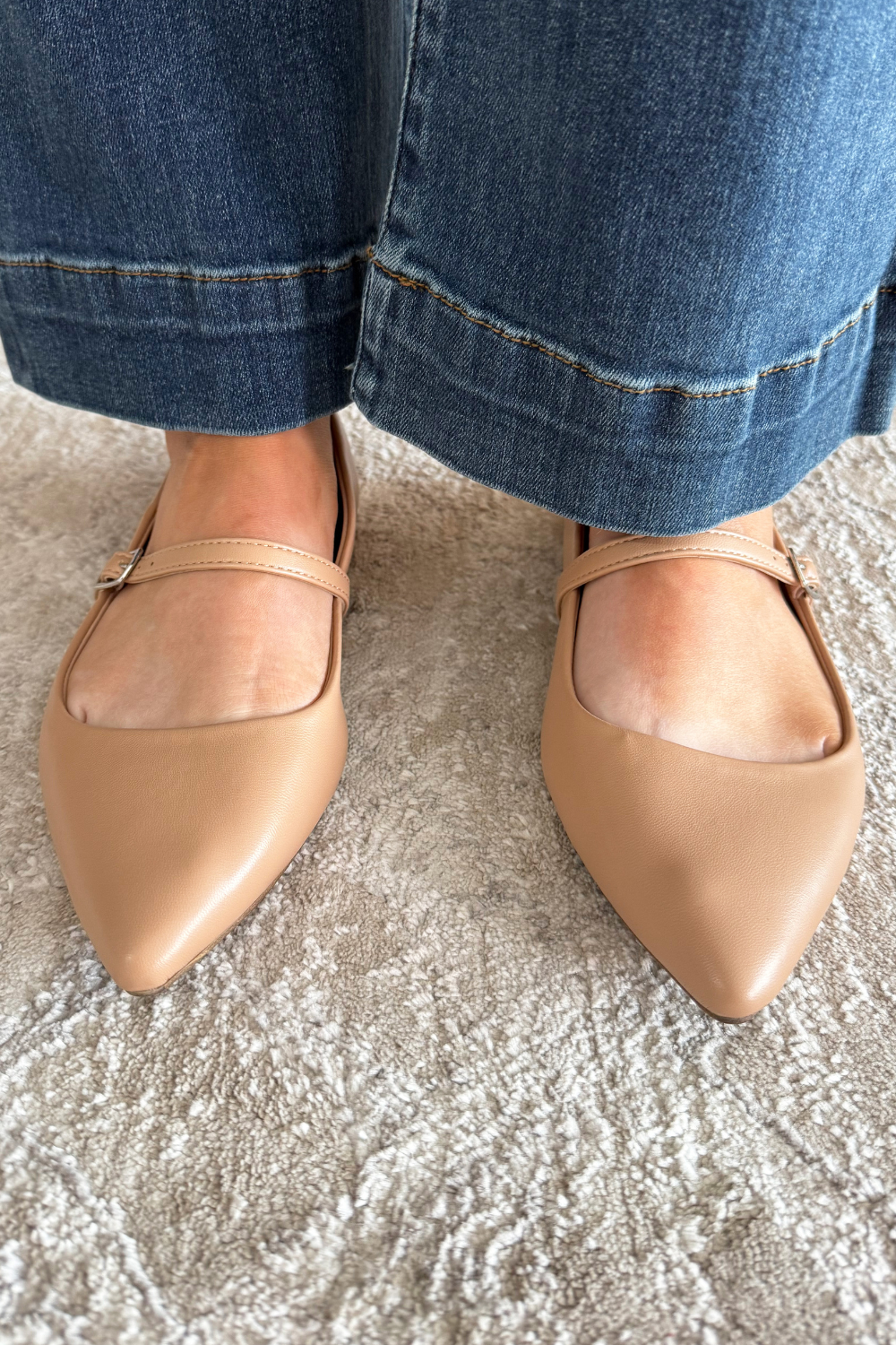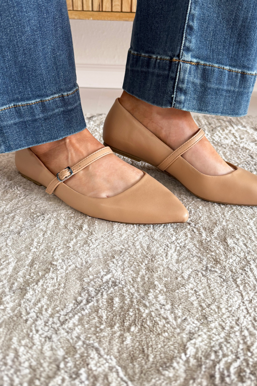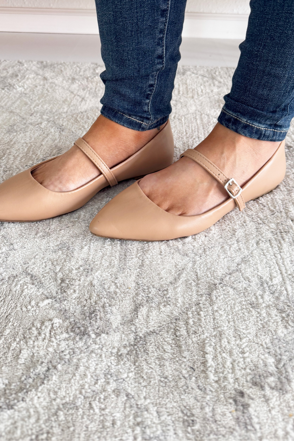 A workwear staple: the Aviba Flat. This everyday flat is made of vegan leather material and features an adjustable buckle and Mary-Jane strap. With a pointed toe design and a cushioned insole, AVIBA is perfect for all day comfort.