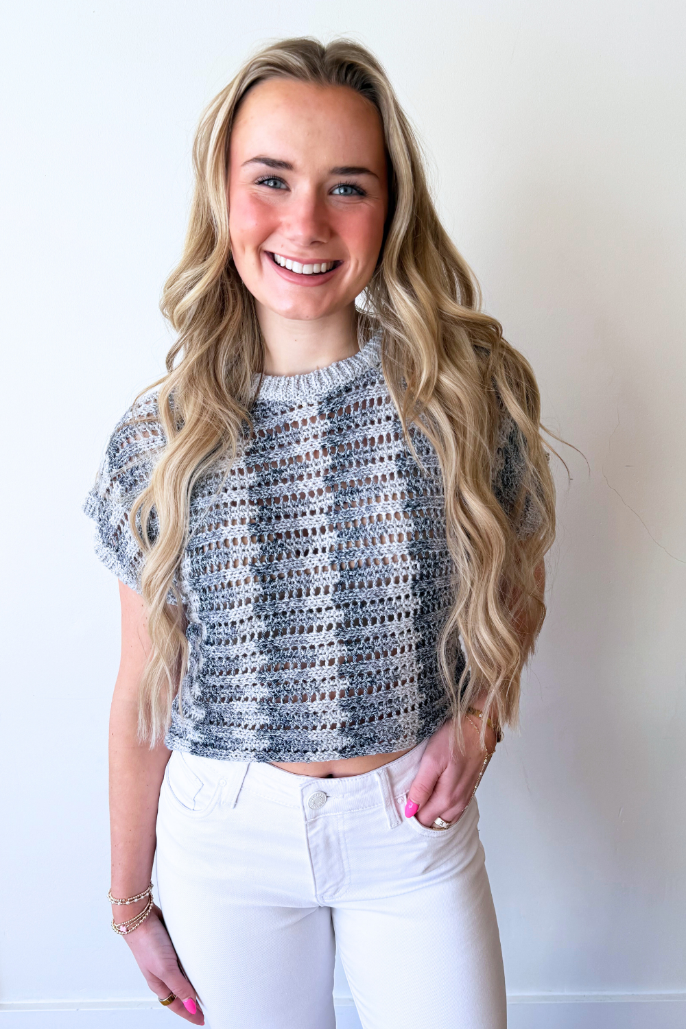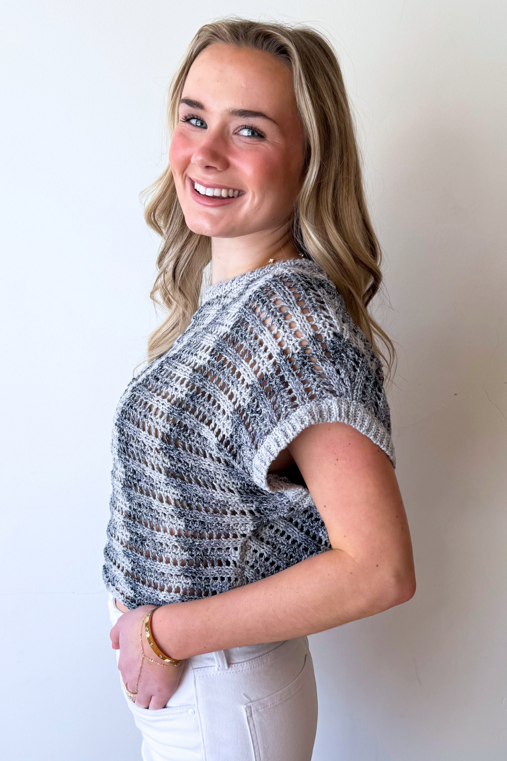The Ballast Crochet Stripe Top brings texture and interest to an easy everyday silhouette. Designed with a crochet-inspired knit and subtle stripe pattern, this top feels lightweight while still making a statement. The relaxed shape makes it easy to style with denim or crisp white bottoms. A perfect piece for effortless, warm-weather styling.