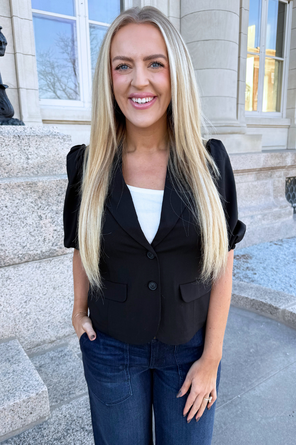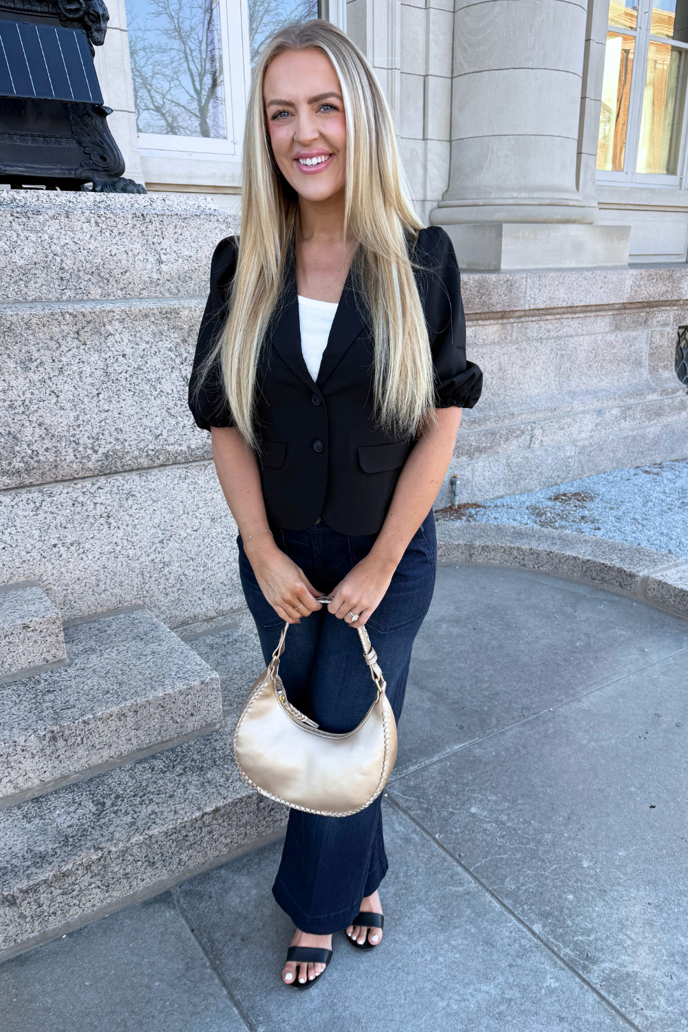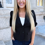 Sophisticated tailoring meets fresh proportions. The Balloon Sleeve Blazer features sculpted sleeves with subtle shirring that add dimension without sacrificing ease. Fully lined for comfort and designed with refined welt pockets and a double button front, it is a statement piece that elevates any outfit.
