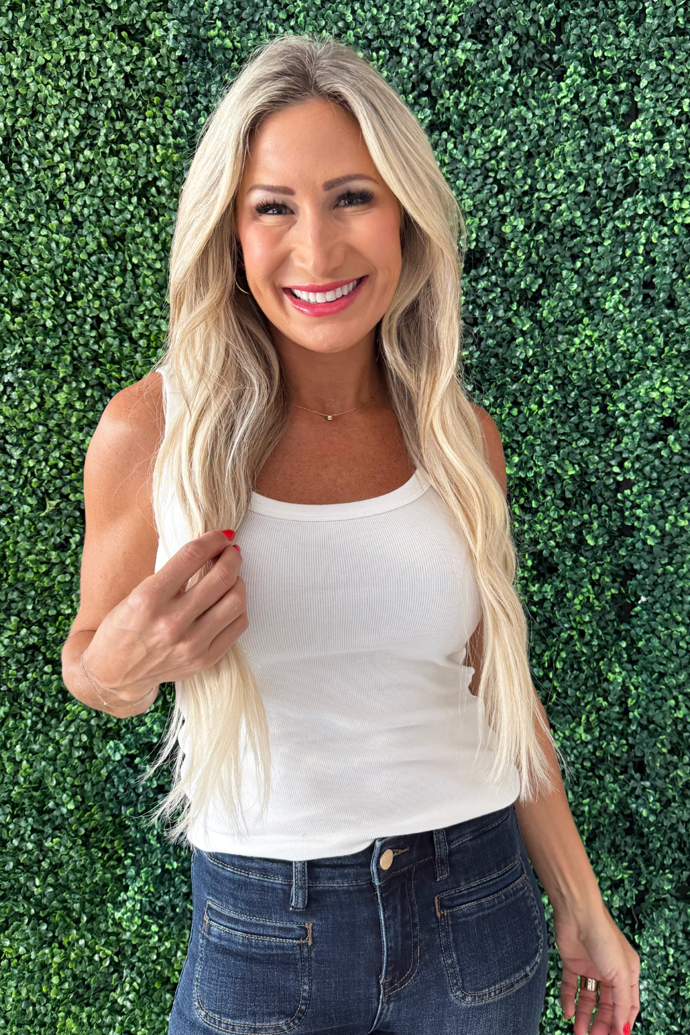 The Basic Ribbed Knit Tank Top is a closet staple. This sleeveless top has a scoop neck and is made from soft ribbed material. It is great on its own or layered under a jacket or blazer. Add to cart now!