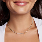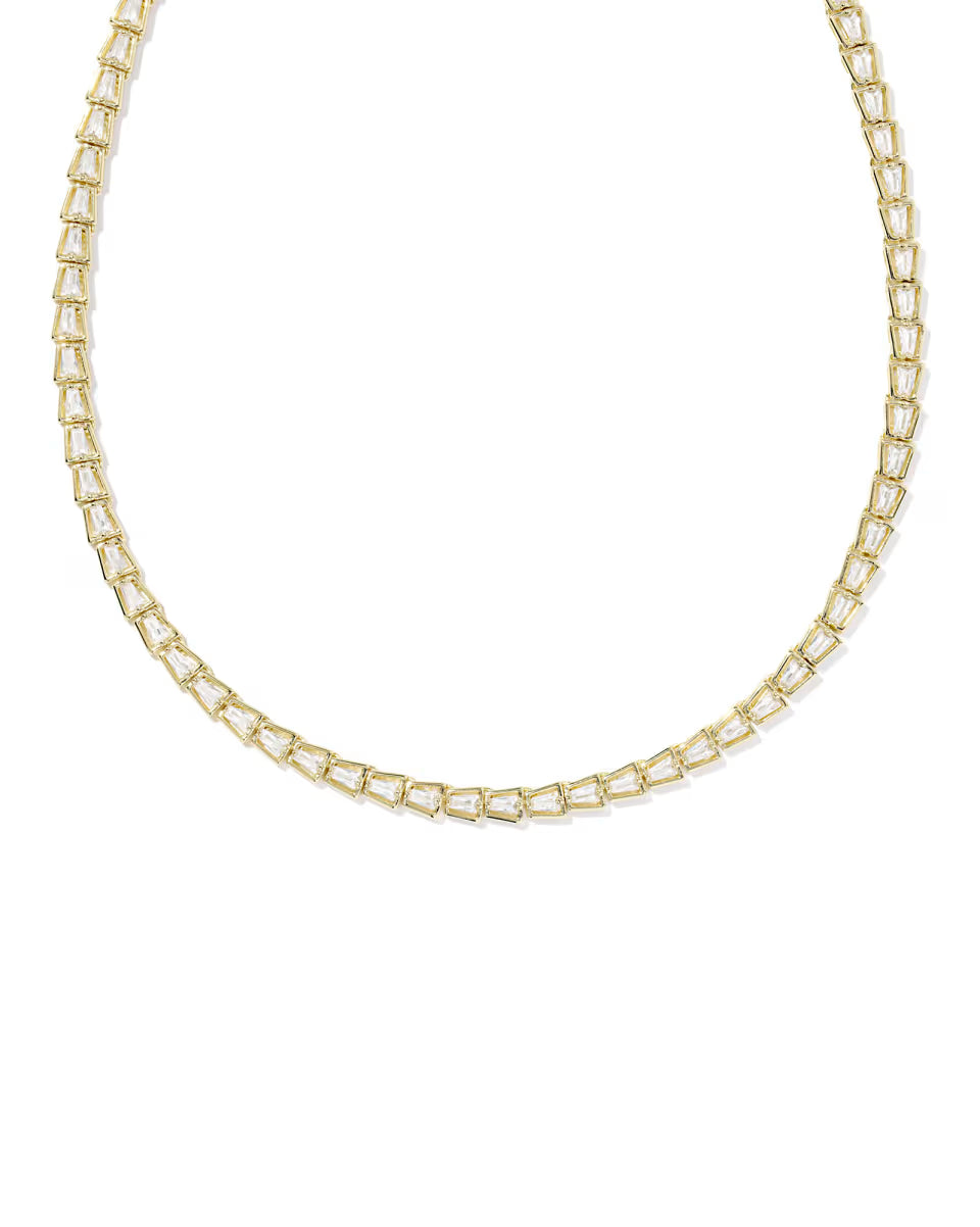 A jewelry classic, now with even more shine. Meet the Bella Tennis Necklace, a stunning strand designed with cubic zirconia stones in a tapered baguette shape for dimensional sparkle. Wear this necklace solo for a chic and minimal look, or try layering it with your other favorite necklaces for a maximalist moment.