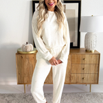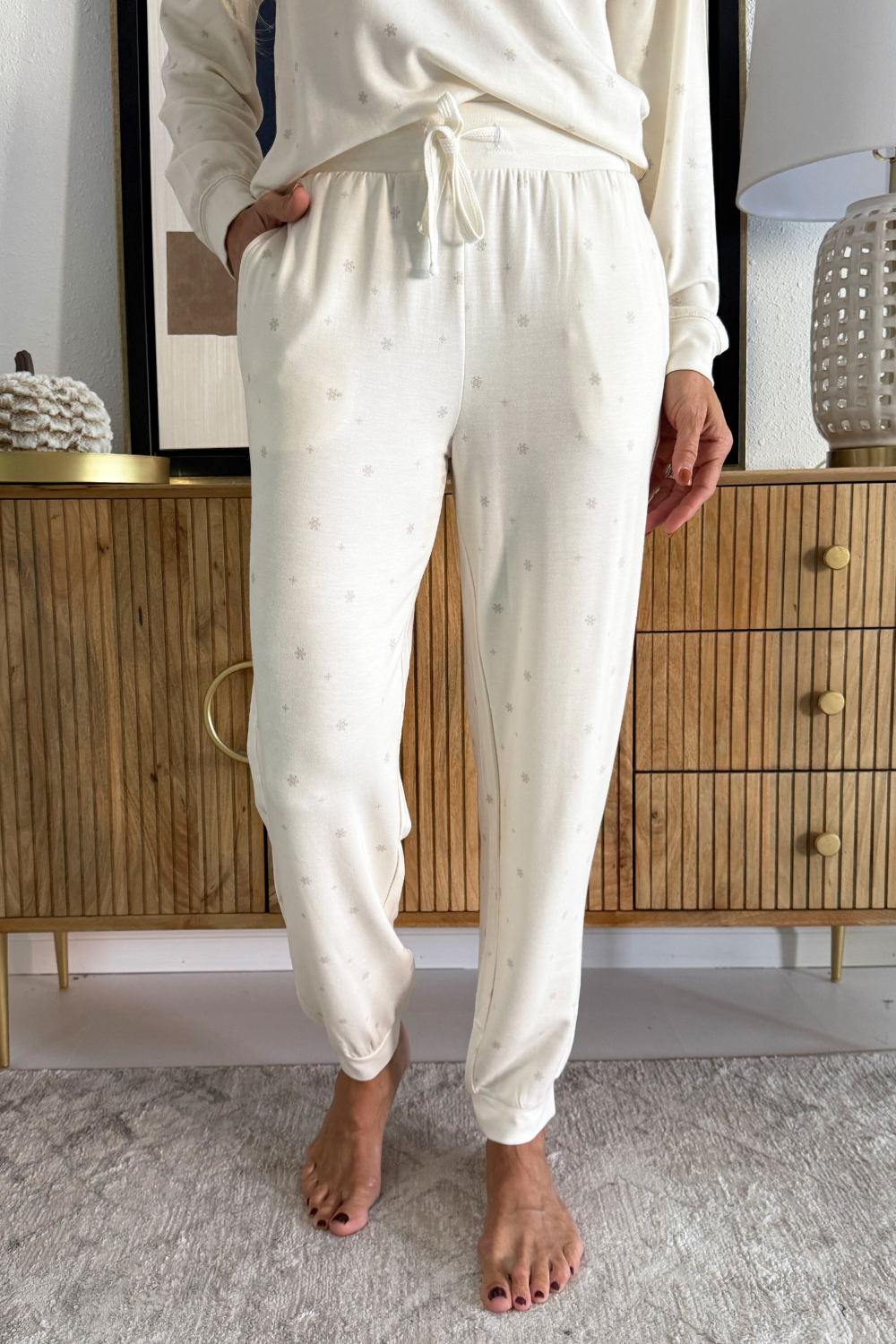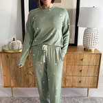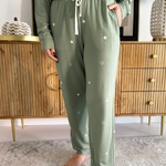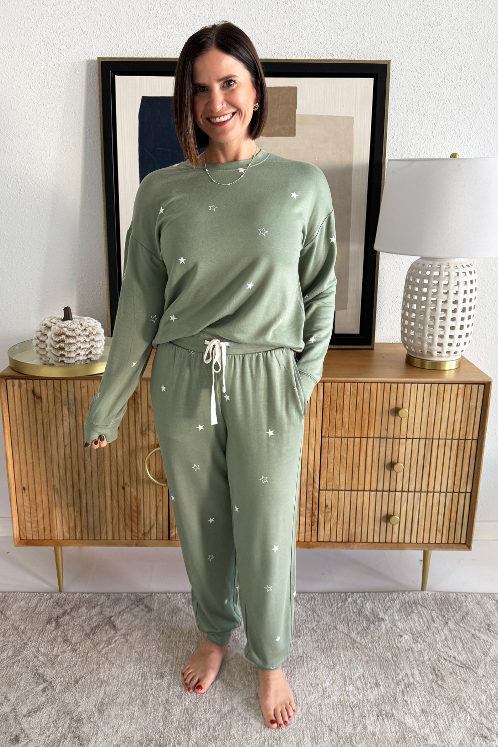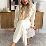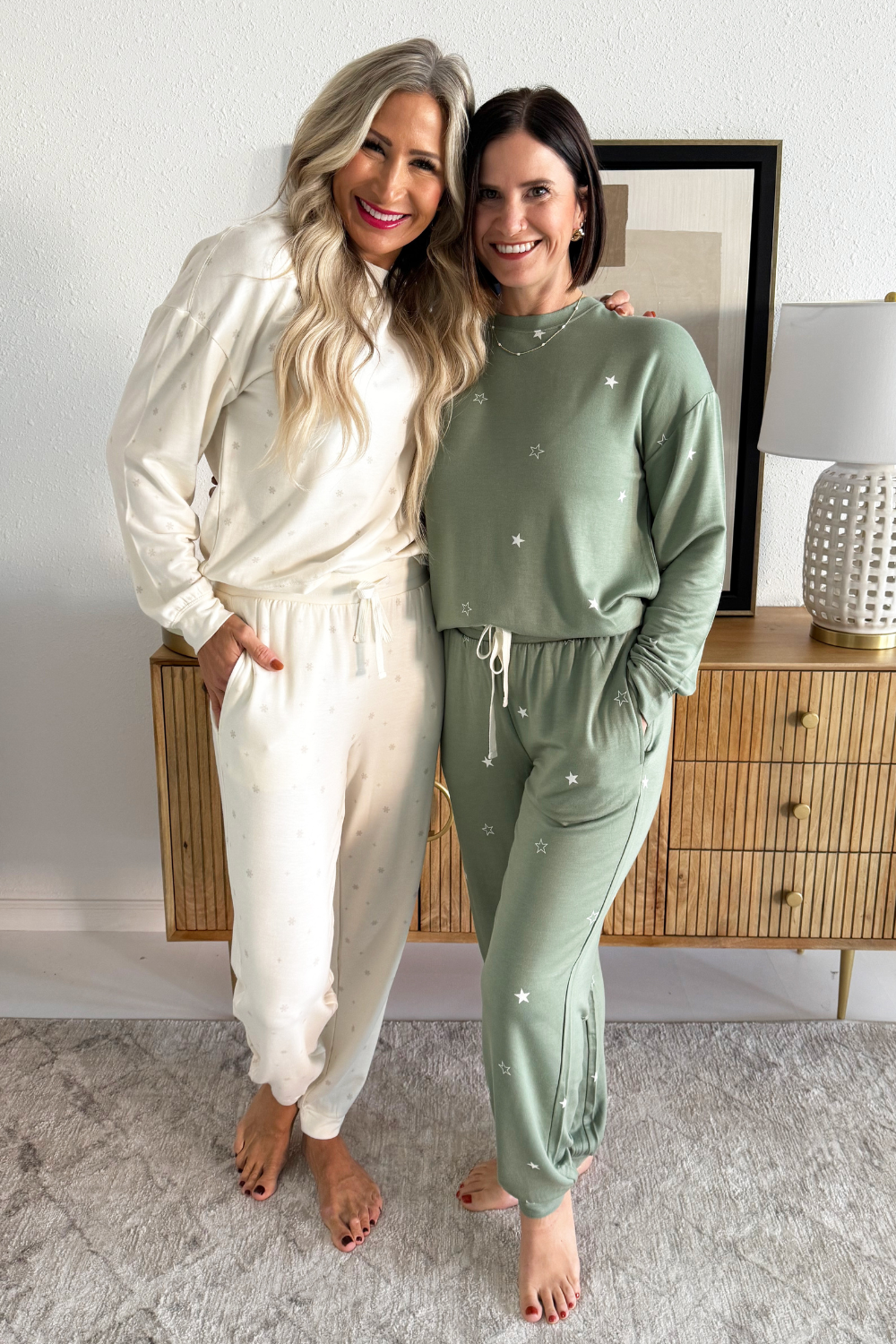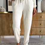 Keep it cozy with the Belle Pajama Set from Thread and Supply! Featuring subtle details, pants with drawstring waistband and a jogger silhouette, these are perfect for the holiday season!