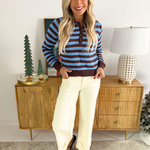 This bohemian-style half button polo striped sweater blends relaxed charm with a touch of vintage flair. Its easy drape, soft knit, and earthy stripe pattern create a laid-back yet stylish look. Finished with a half button placket and polo collar, it’s the perfect cozy piece for effortlessly cool outfits!