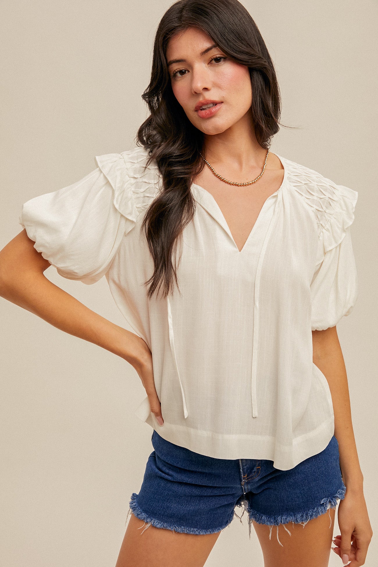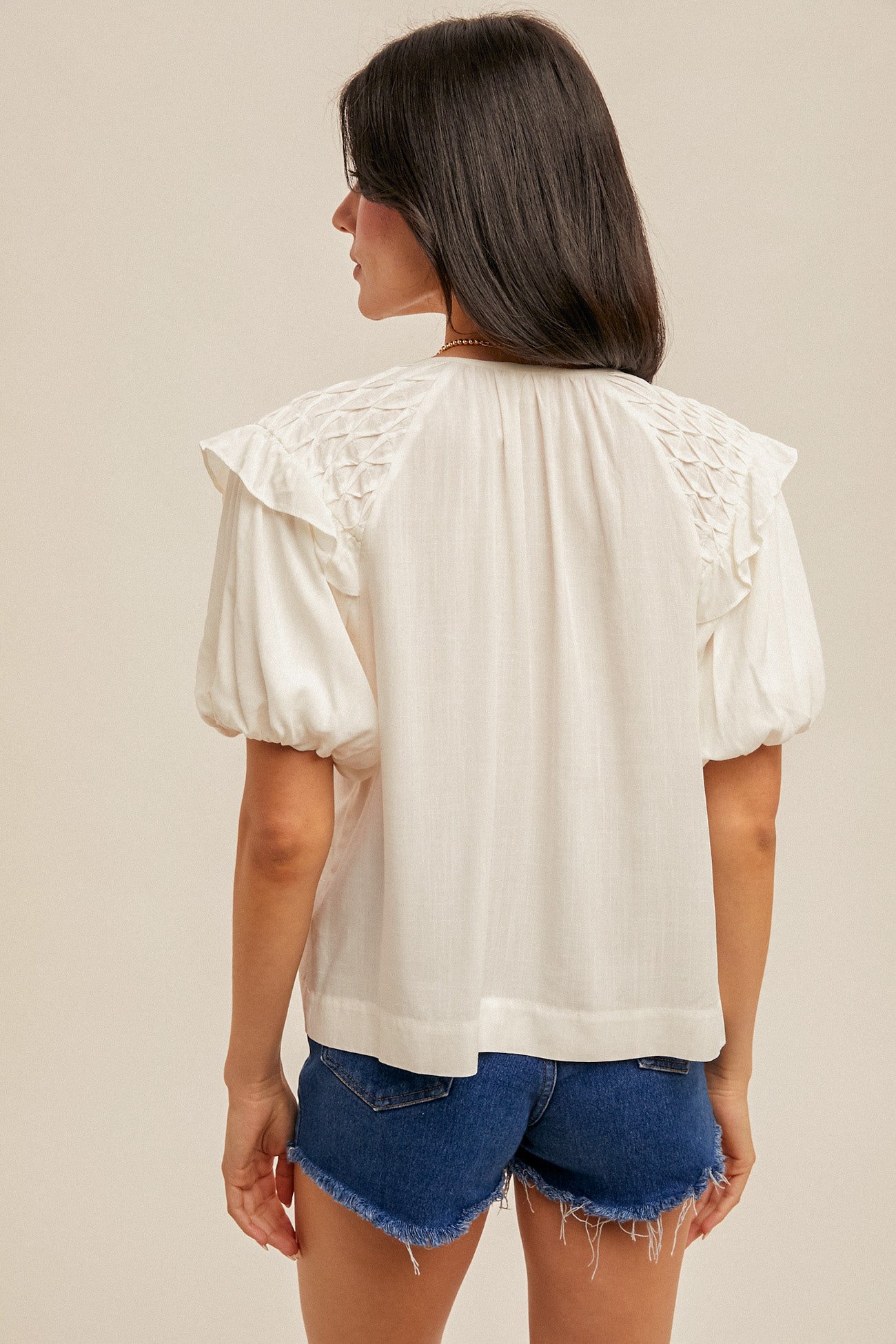 Bubble Sleeve Pin Tuck Detailed Peasant Blouse