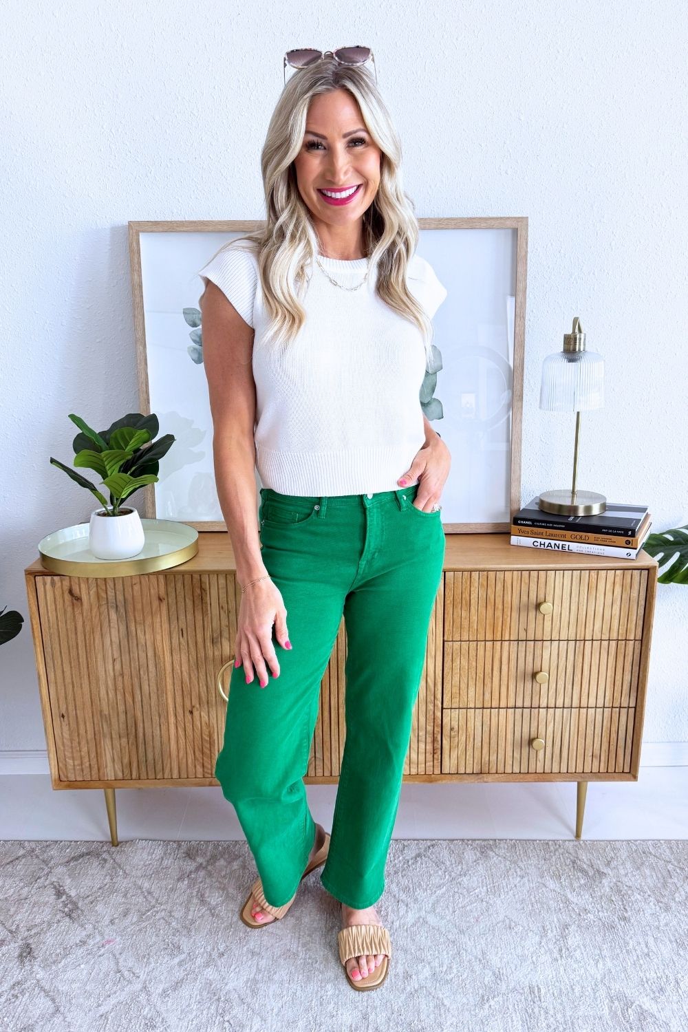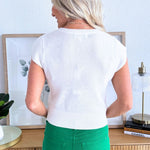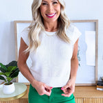 The Cap Sleeve Knit Top is a warm weather favorite. This top has a round neck and flattering cap sleeves. It works great with denim, shorts, or skirts.