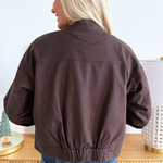 Elevate your style with this new bomber jacket! Featuring a full zip front and large patch pockets, this is designed to perfectly layer over your favorite tops, this will help you create effortless fall looks!