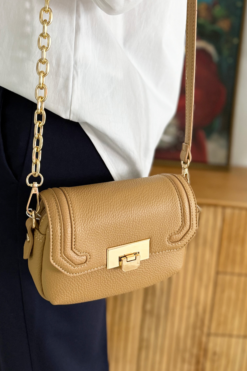 This crossbody is the perfect choice for those seeking a compact yet elegant bag, ideal for both day and evening use, especially during the fall season when chic versatility is key.