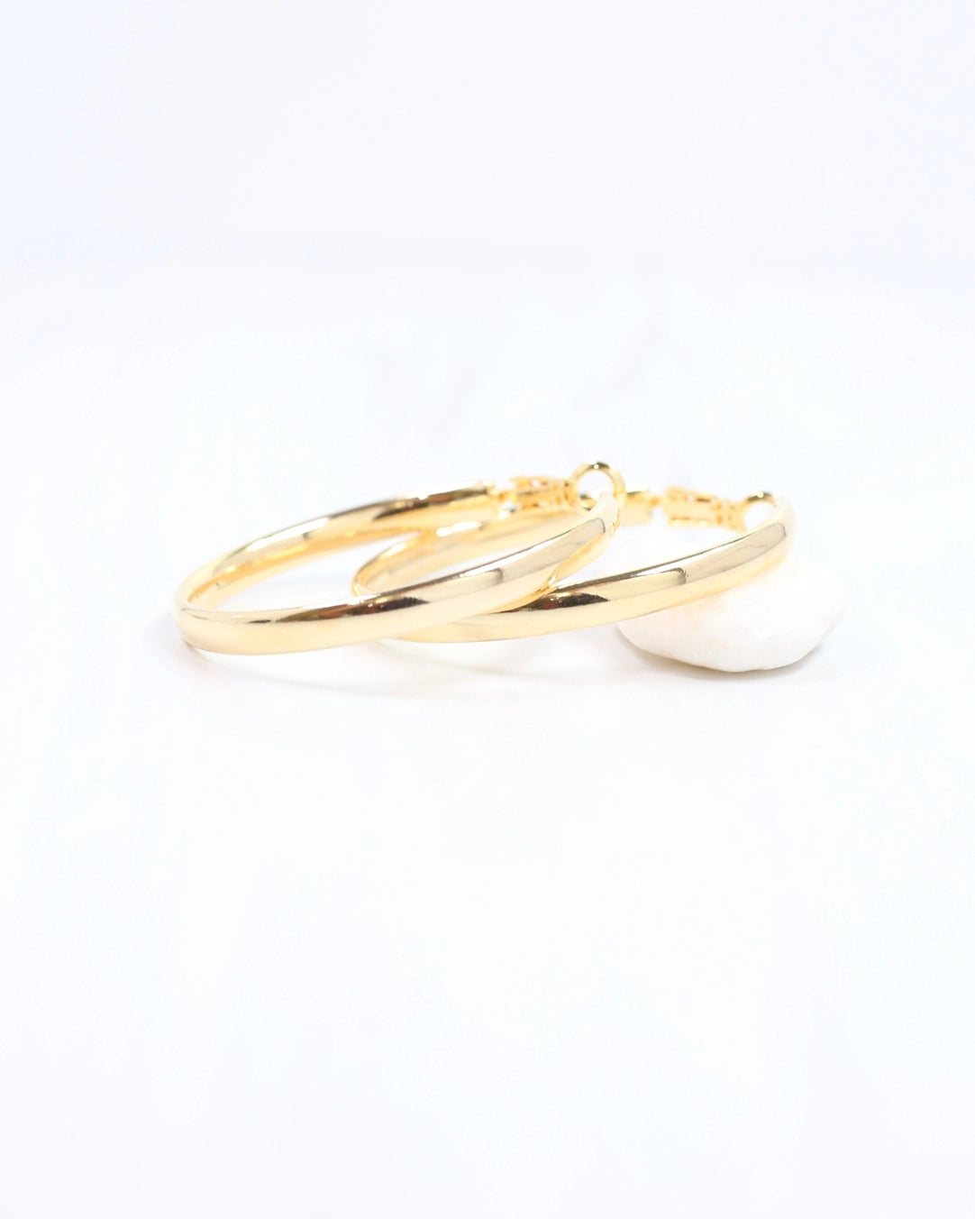 Add a touch of sparkle to your everyday look with the Cecilia Hoop Earrings in Gold. These smooth, gold-dipped hoops feature a secure latch back design, making them easy to wear and perfect for all-day comfort. Lightweight and versatile, they’re your new go-to accessory for a playful yet polished vibe.