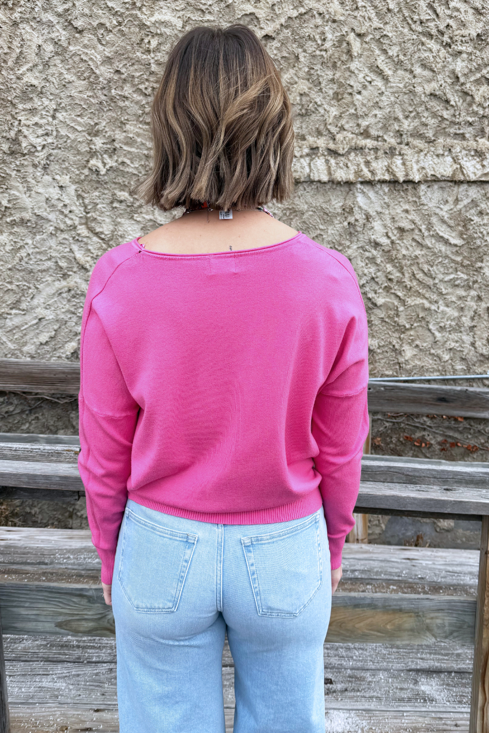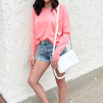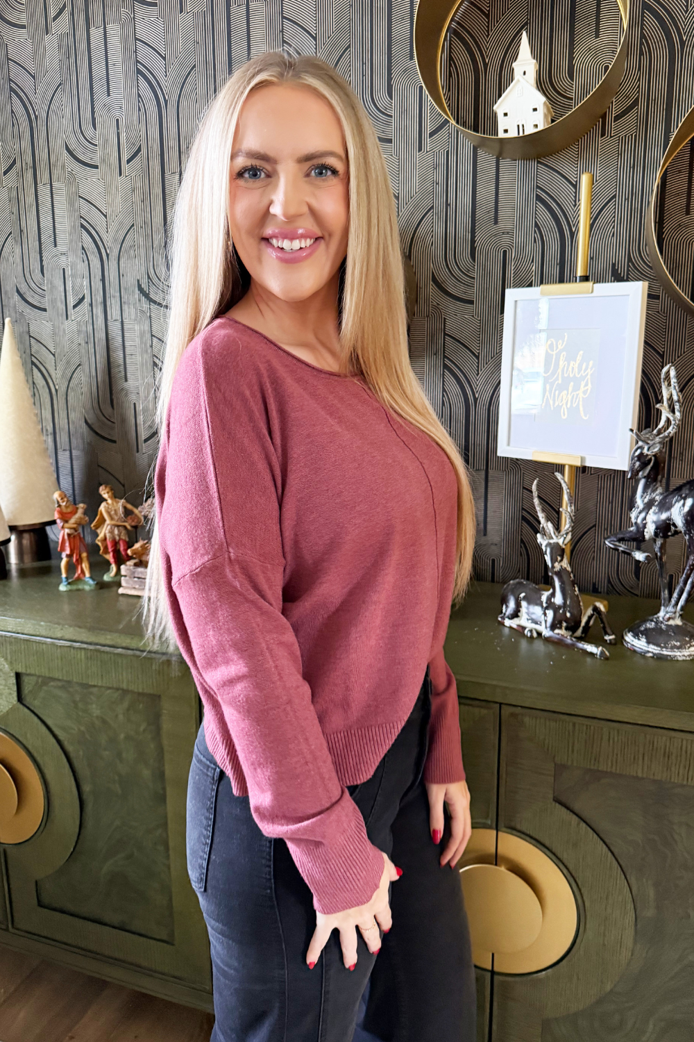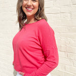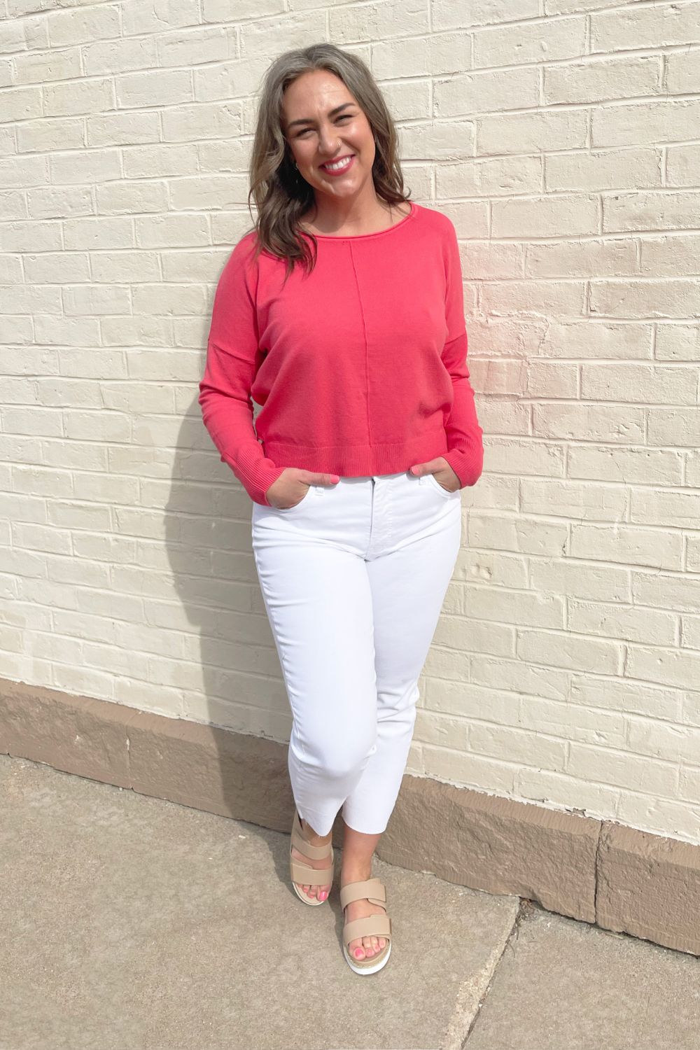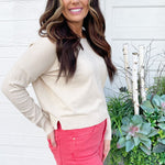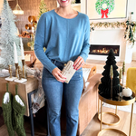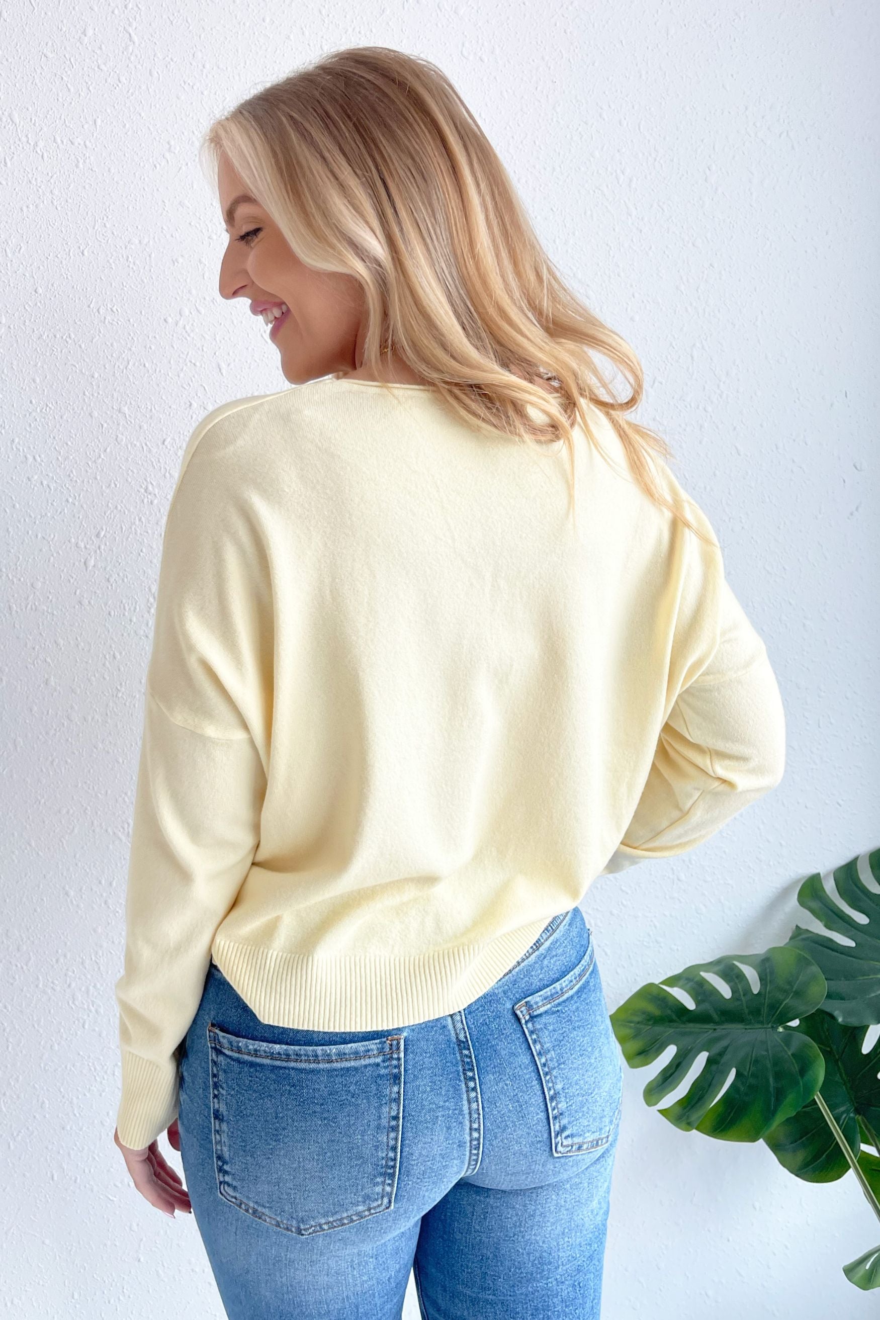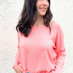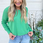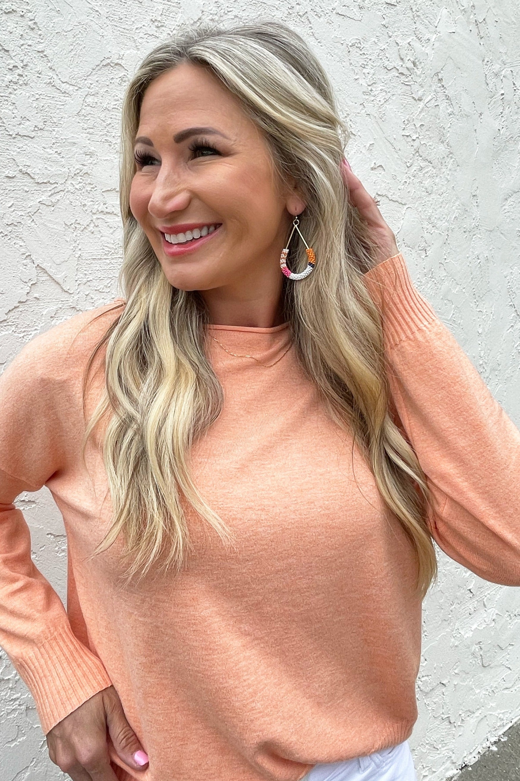 A pop of color is all you need to transition to Spring and Summer and this Center Seam Boat Neck Sweater is the perfect place to start! The wider neckline is a little flirty and a fun change from our big sweaters. This sweater has dolman sleeves and a cute center seam detail. Style with high waisted denim of any kind!