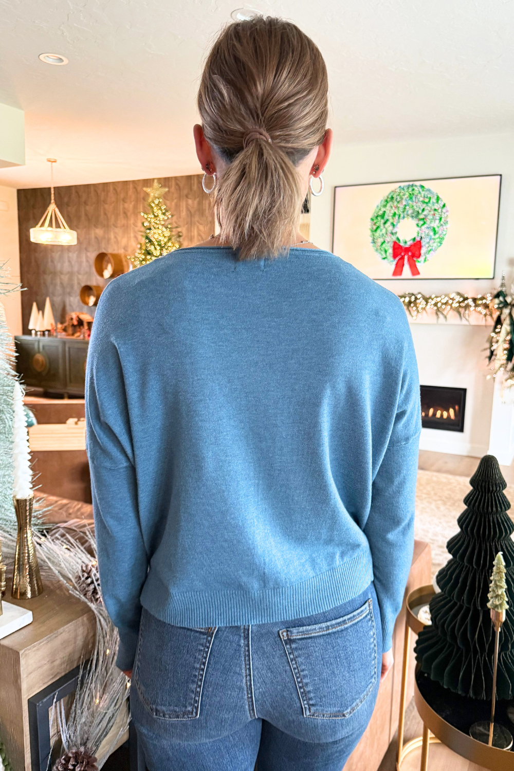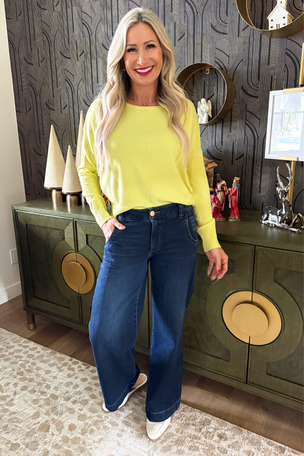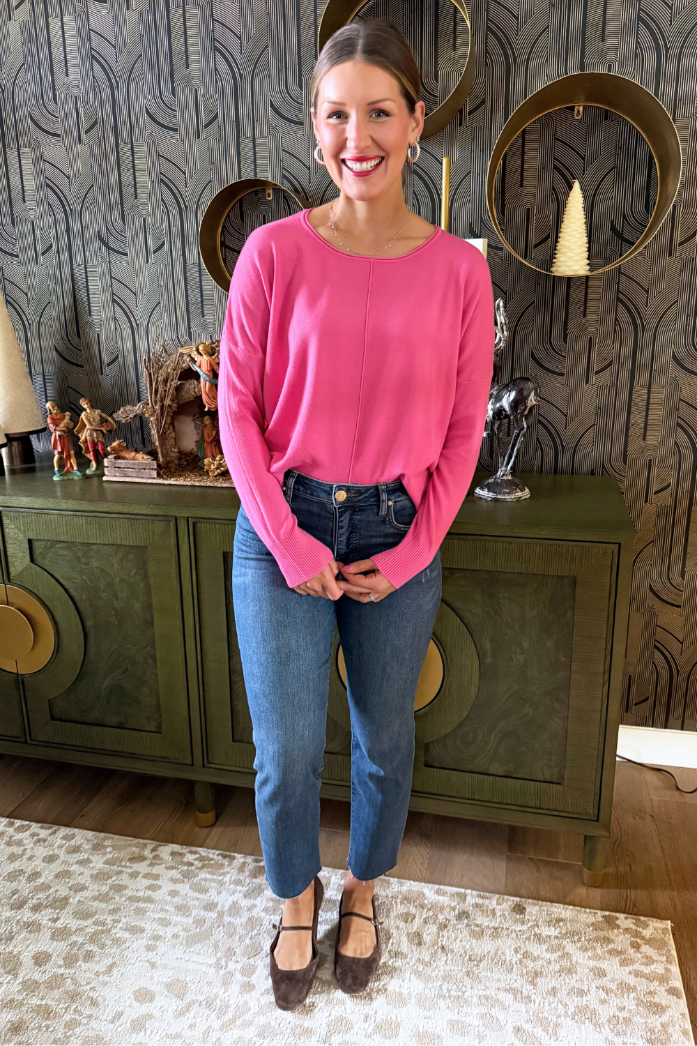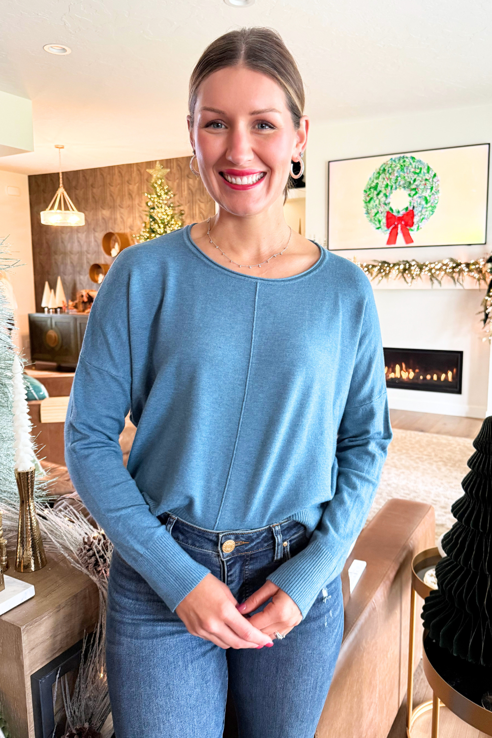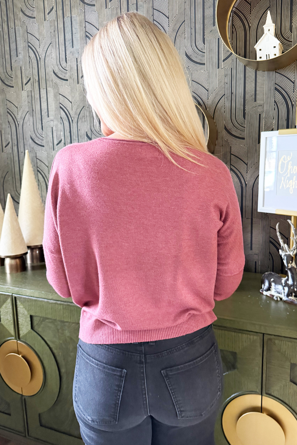 A pop of color is all you need to transition to Spring and Summer and this Center Seam Boat Neck Sweater is the perfect place to start! The wider neckline is a little flirty and a fun change from our big sweaters. This sweater has dolman sleeves and a cute center seam detail. Style with high waisted denim of any kind!