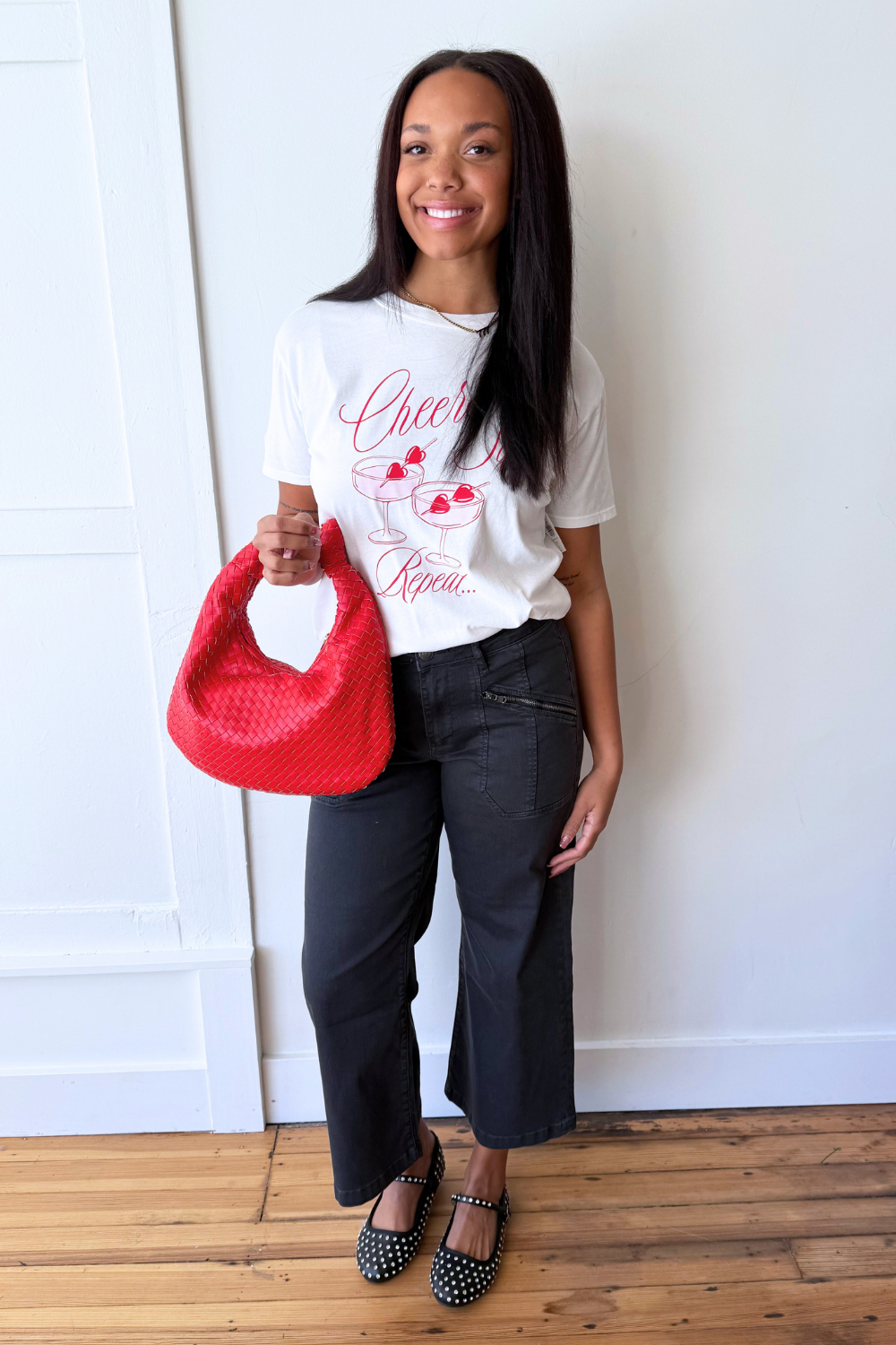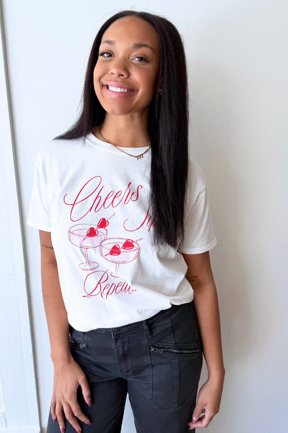 The Cheers Boyfriend Tee brings a fun, laid-back vibe to an everyday essential. Designed with a relaxed boyfriend fit and soft, breathable fabric, it’s perfect for easy, casual styling. Pair it with denim, shorts, or joggers for an effortlessly cool look!