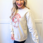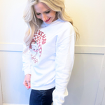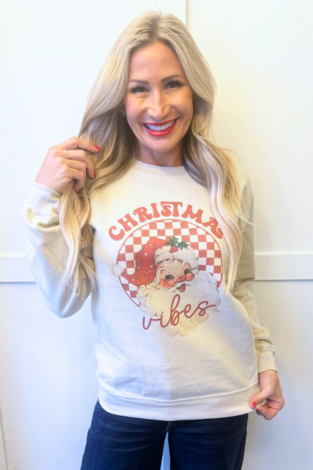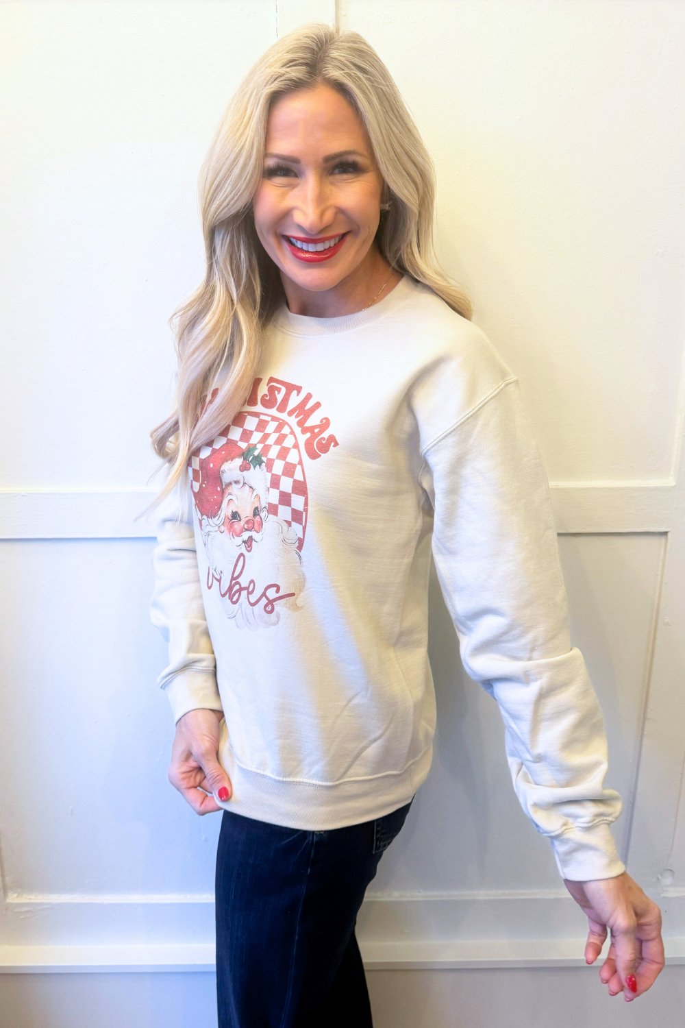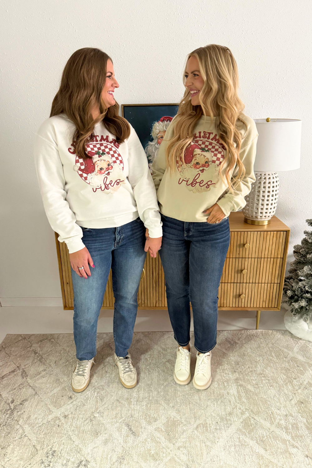 Comfortable meets Christmas with this cozy vintage inspired Santa Sweatshirt! The classic crew neck allows for all day wear and comfort! Get one of these for the holiday season!