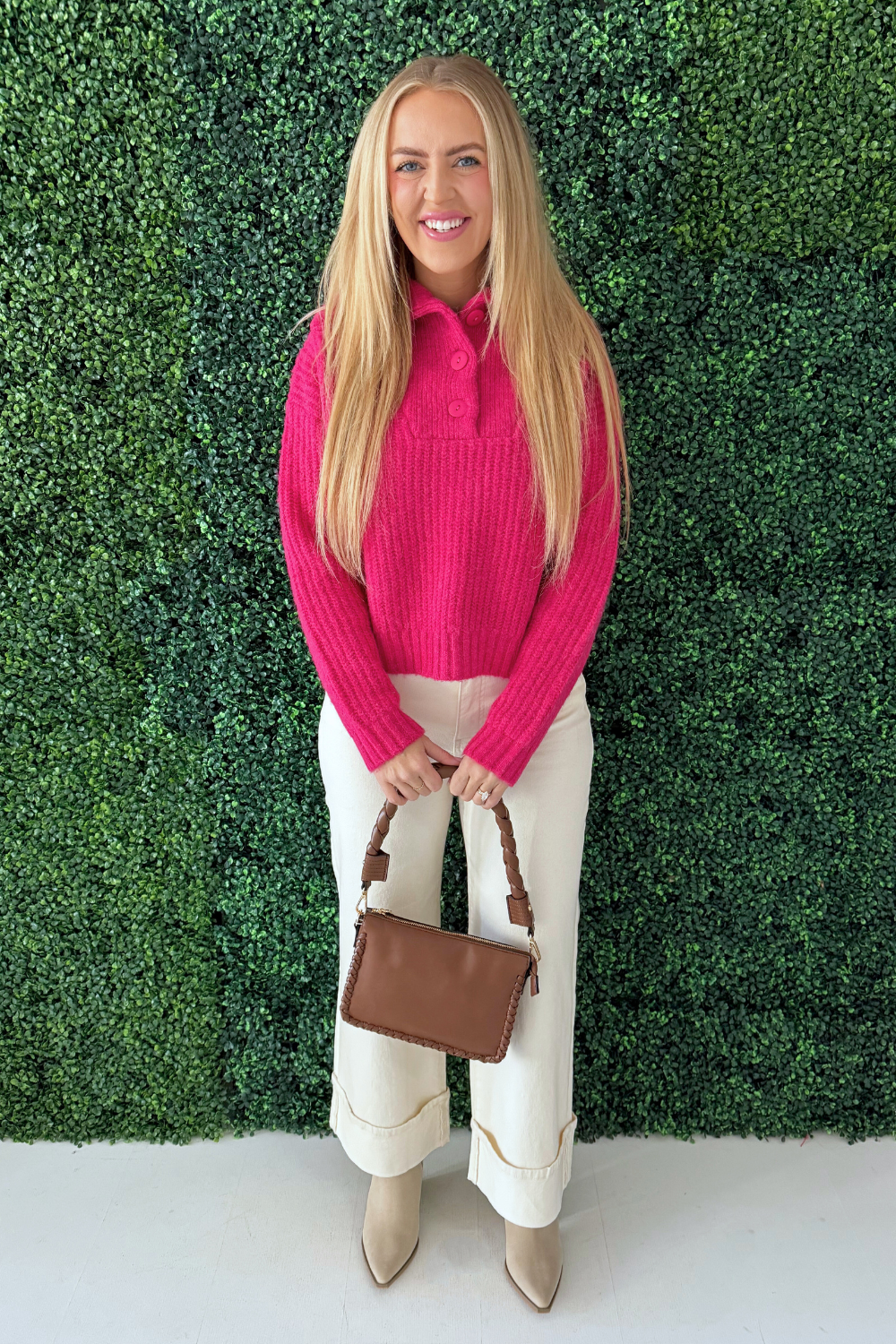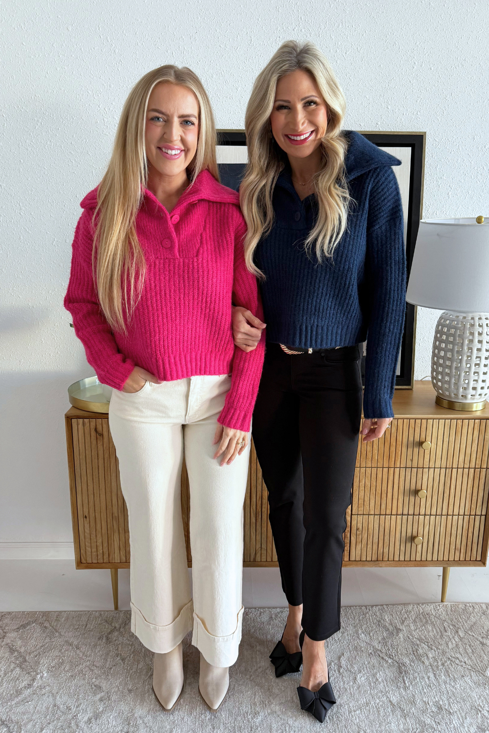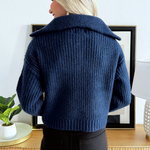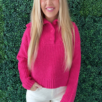 This chunky varsity collar sweater blends cozy texture with classic collegiate style. Featuring a thick knit and bold collar detail, it delivers warmth with a sporty, elevated edge. Perfect for layering or wearing on its own, it’s a standout piece for cool-weather days!