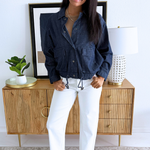 This is not your average denim jacket! The Collared Button Up Denim Jacket has a dark wash that makes it perfect for Winter. Simply layer over your favorite jeans for an easy everyday look.