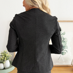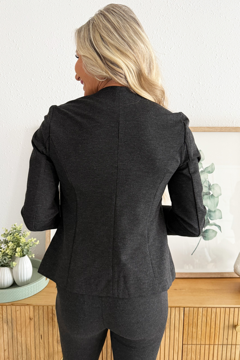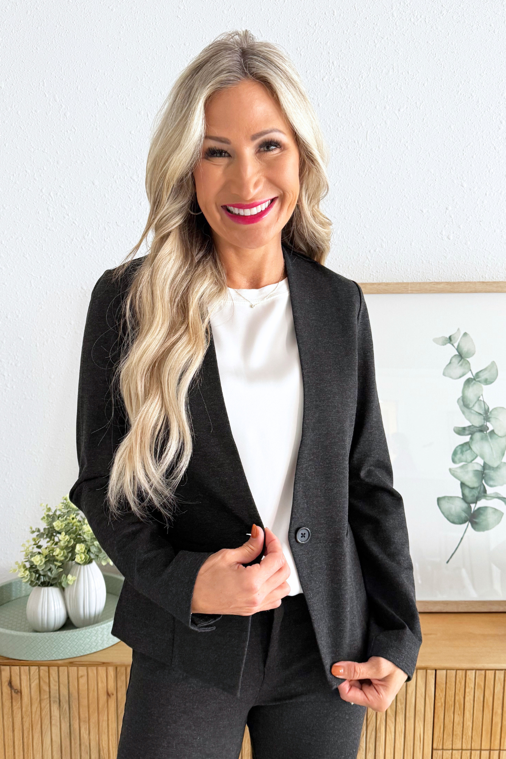 A modern take on tailoring, this collarless blazer features a sleek silhouette and subtle stretch for comfort and ease. Polished yet effortless, it's a layer that pulls it all together!