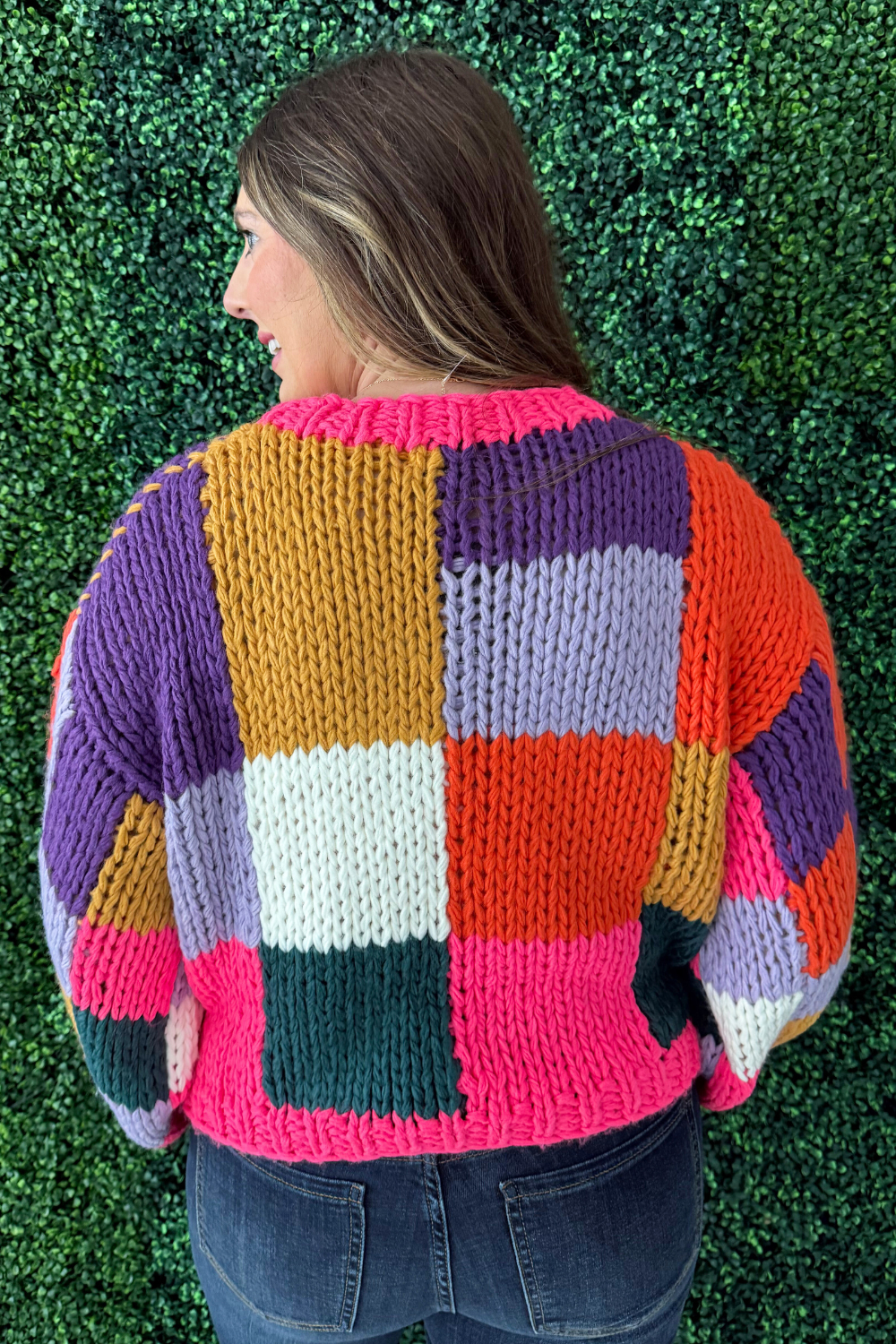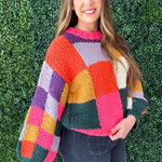 This Color Block Chunky Crochet Sweater brings bold texture and cozy style together in one standout piece! Featuring vibrant, contrasting blocks of color, this knit sweater offers warmth and will be your newest obsession this fall!