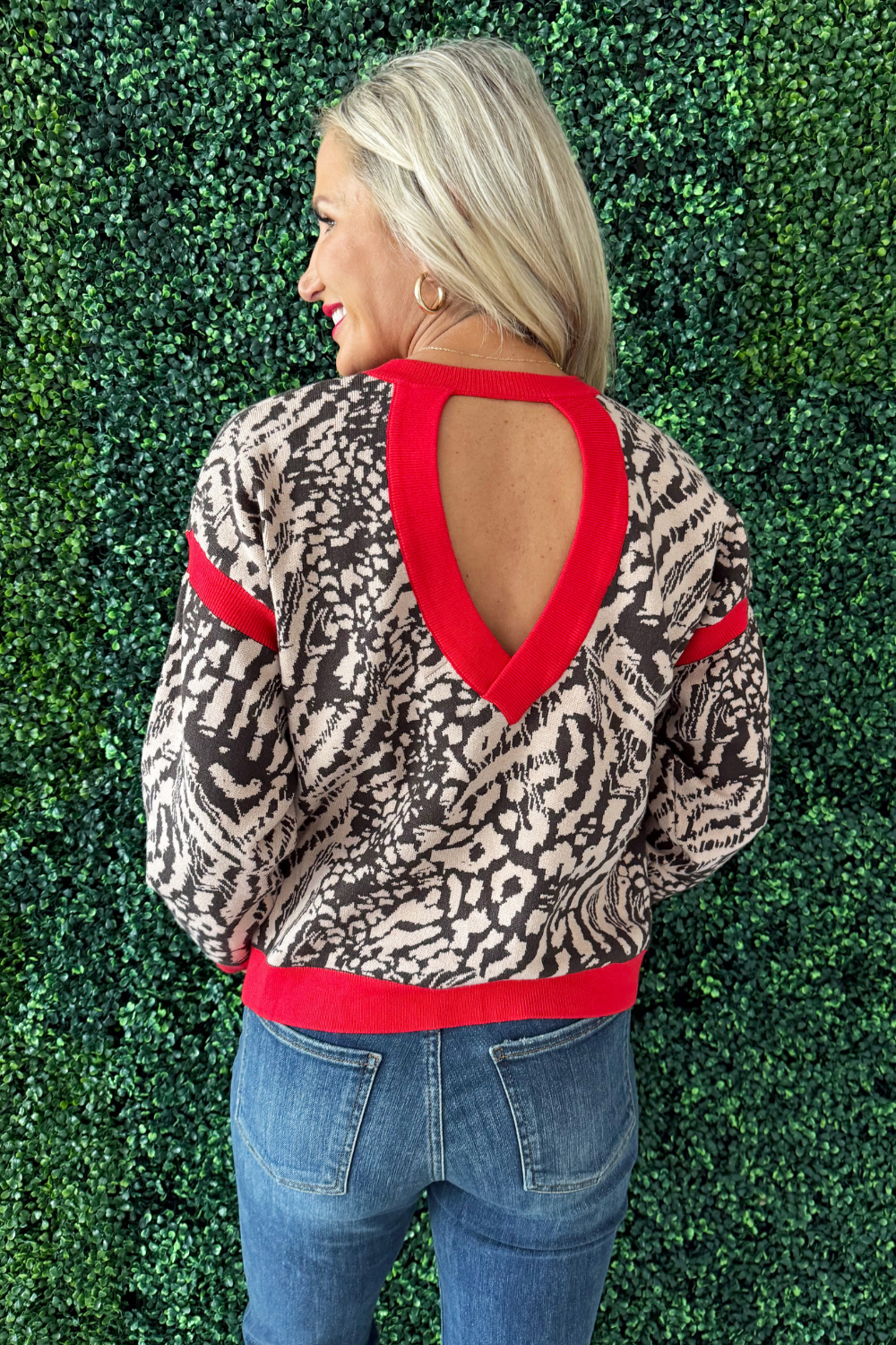 Spice up your wardrobe with this bold contrast ribbing detail sweater with an open back! This top adds a pop of color to any outfit! Pair back to your favorite denim and flats for a look that transitions effortlessly from day to night!