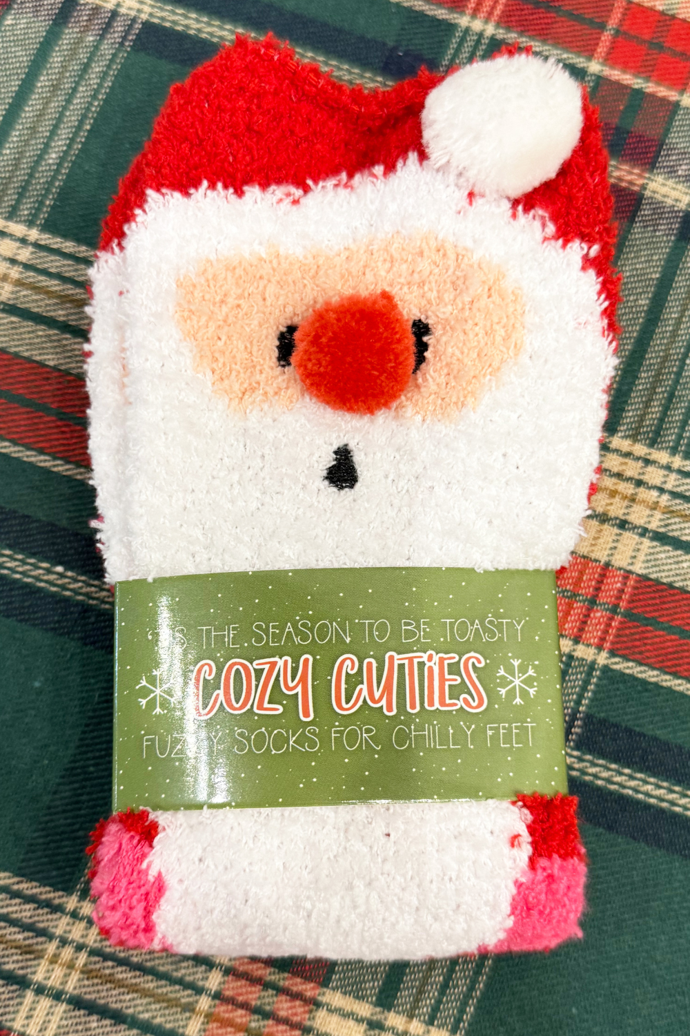 Warm those chilly feet with these super-soft fluffy socks in three-dimensional classic stylings: Santa, snowman & reindeer. Vibrant colors and striped legs. 'Tis the season to be toasty!