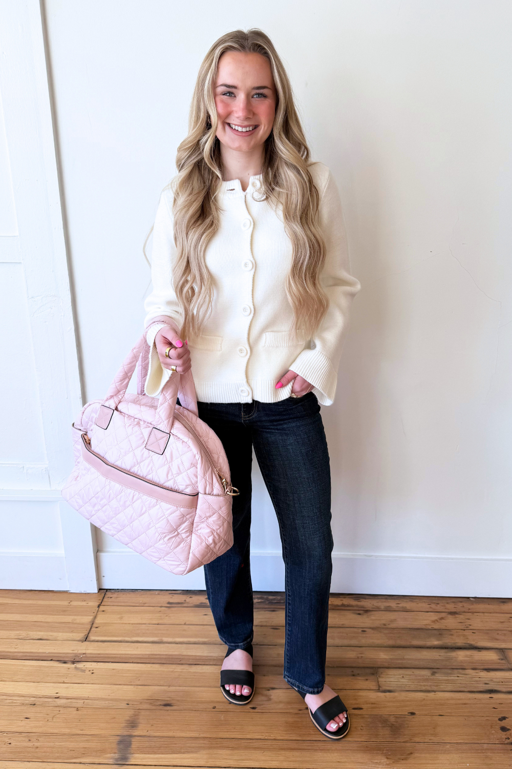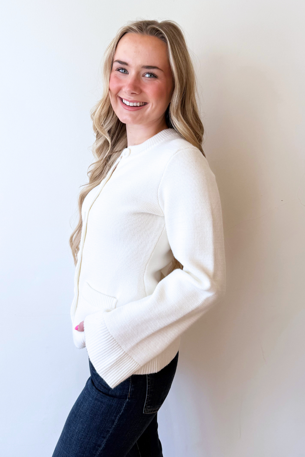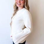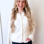 A crewneck cardigan with flared sleeves that make a subtle statement. The button-front design offers effortless styling, while the soft knit adds everyday comfort. Perfect for pairing with denim, skirts, or dresses!