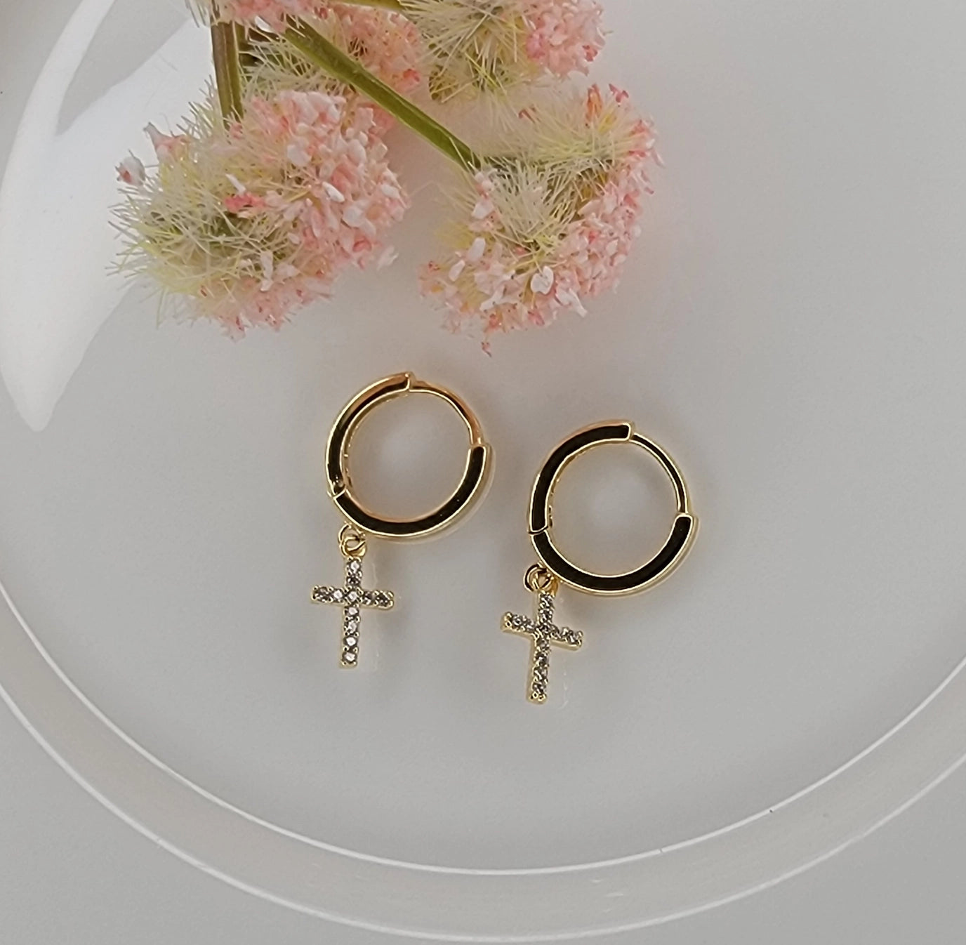 Cross Huggie Hoop Earrings