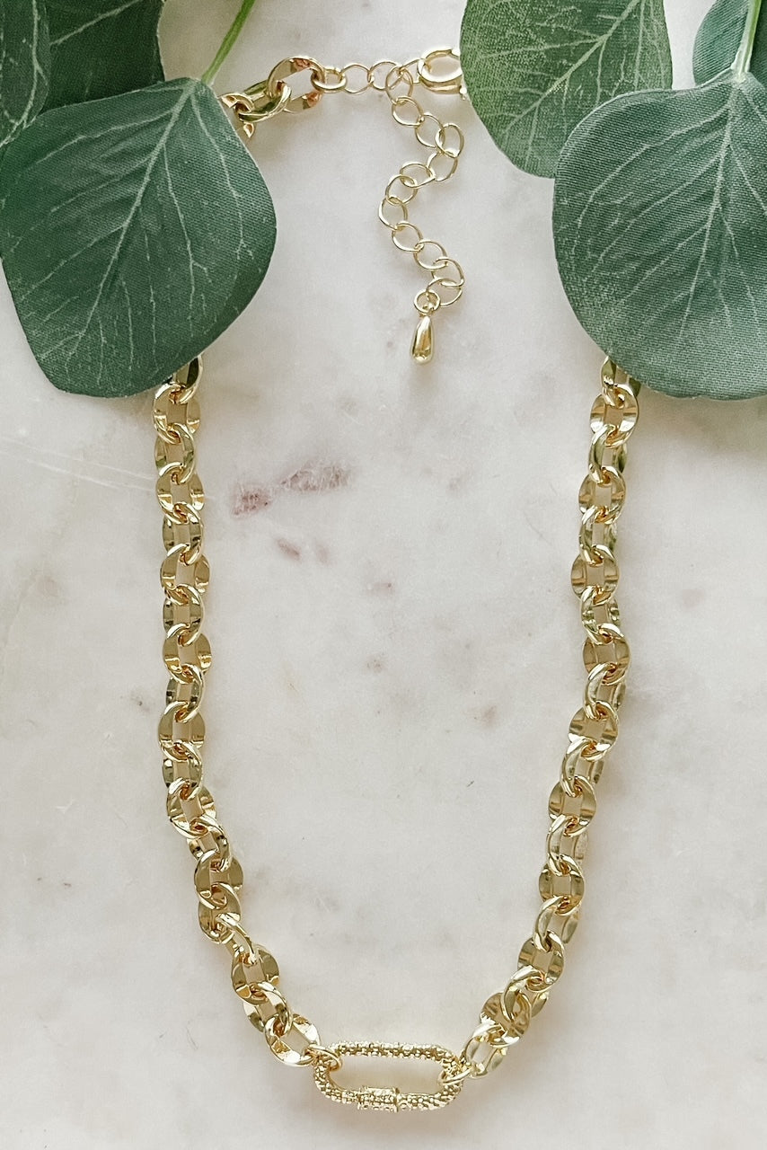 The Dainty Beaded CZ Crescent Necklace is a stunning gold chain with dainty details. The thick chain link holds a dainty cubic zirconia charm that brings the boldness down a notch.